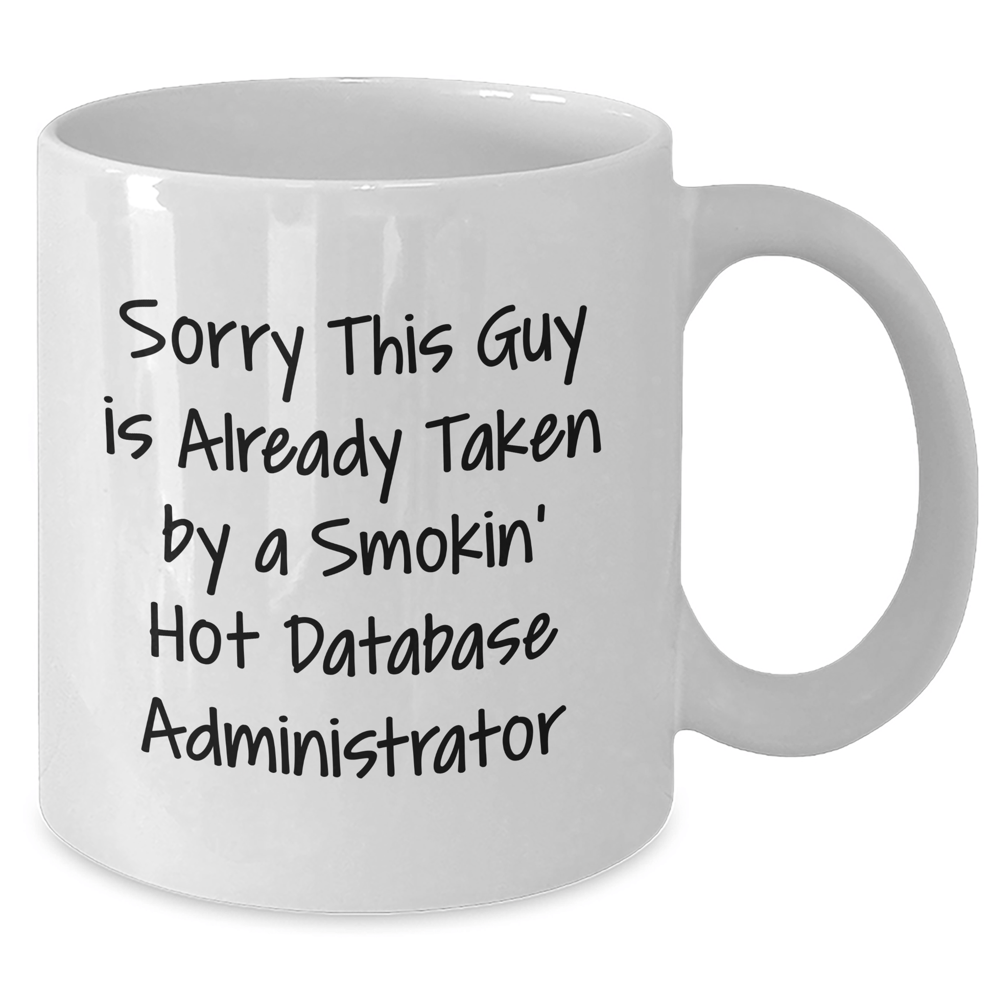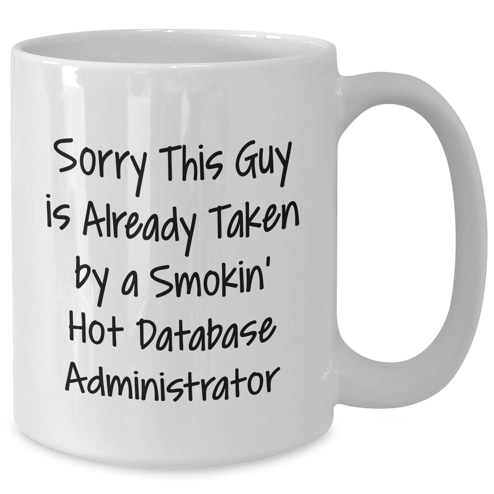 - The quote 'Sorry This Guy Is Already Taken By A Smokin' Hot Database Administrator' is a humorous take on the often-absent romantic life of database administrators.