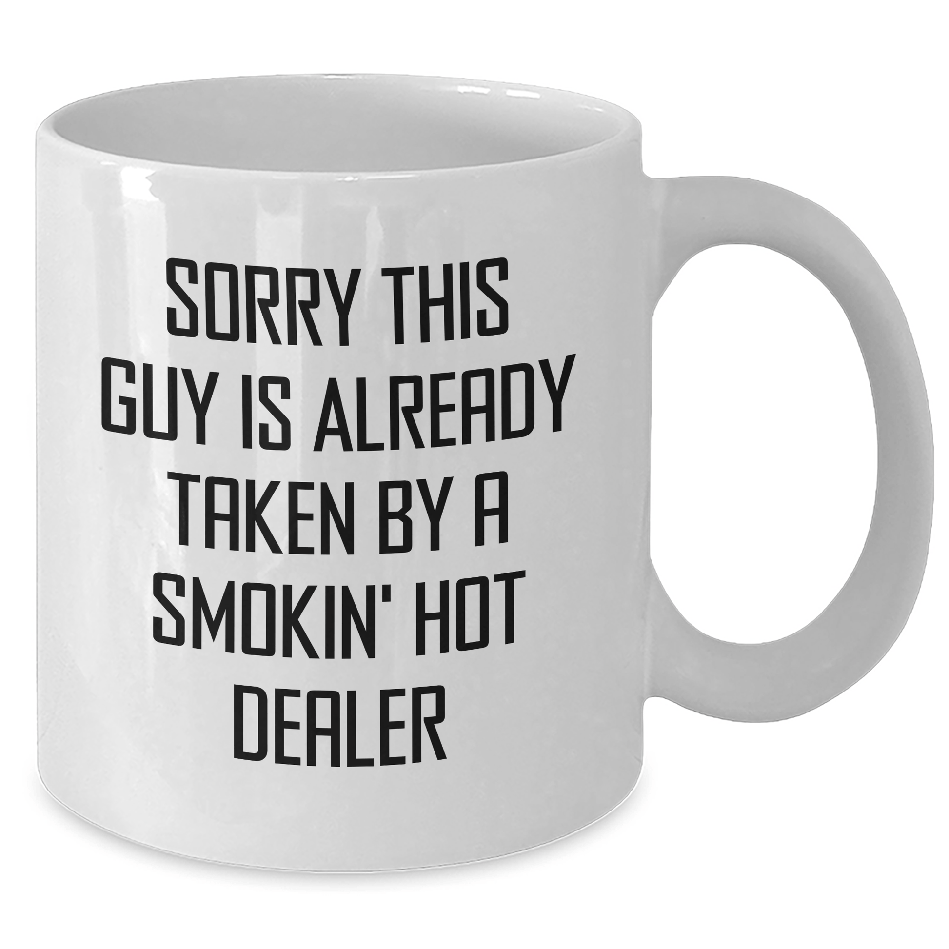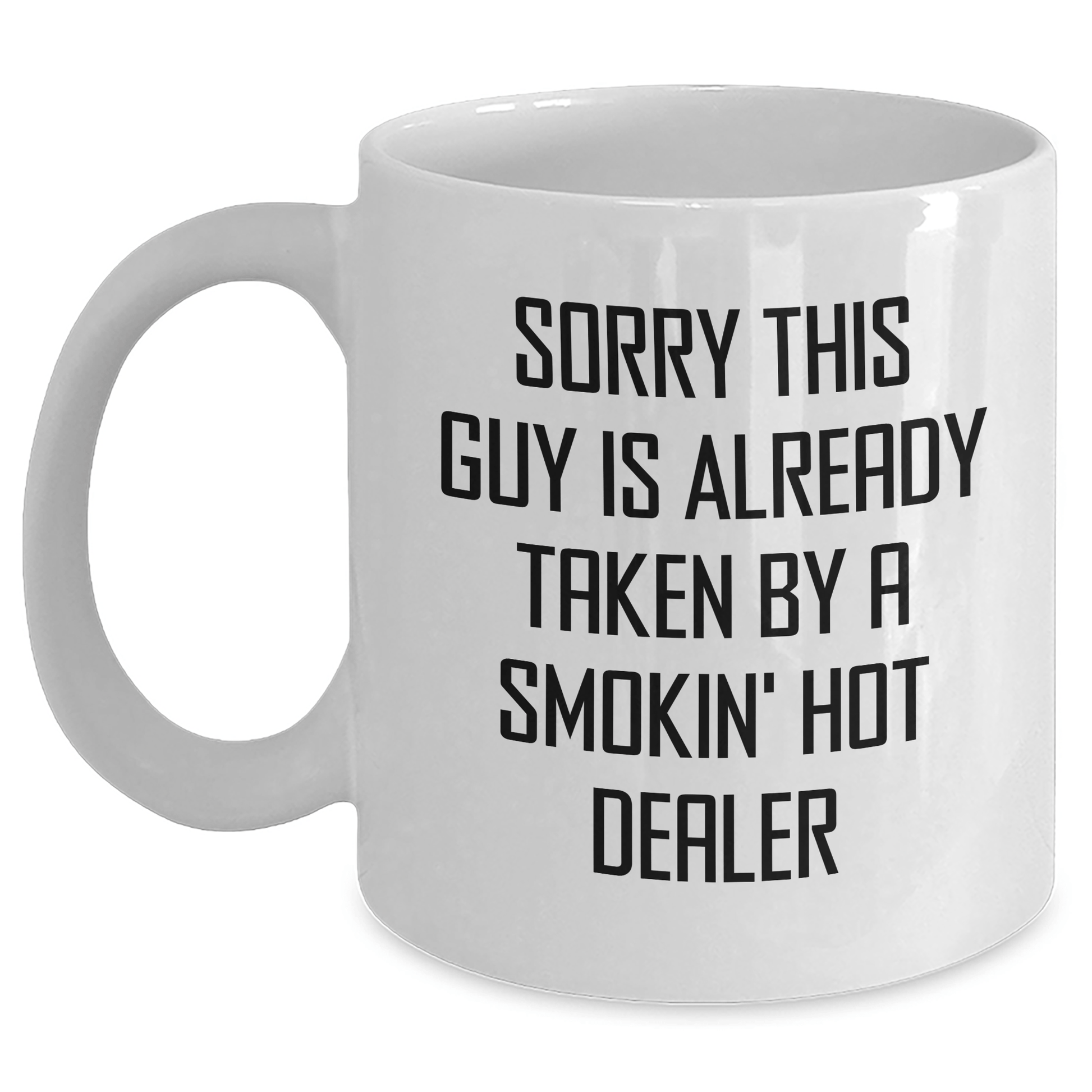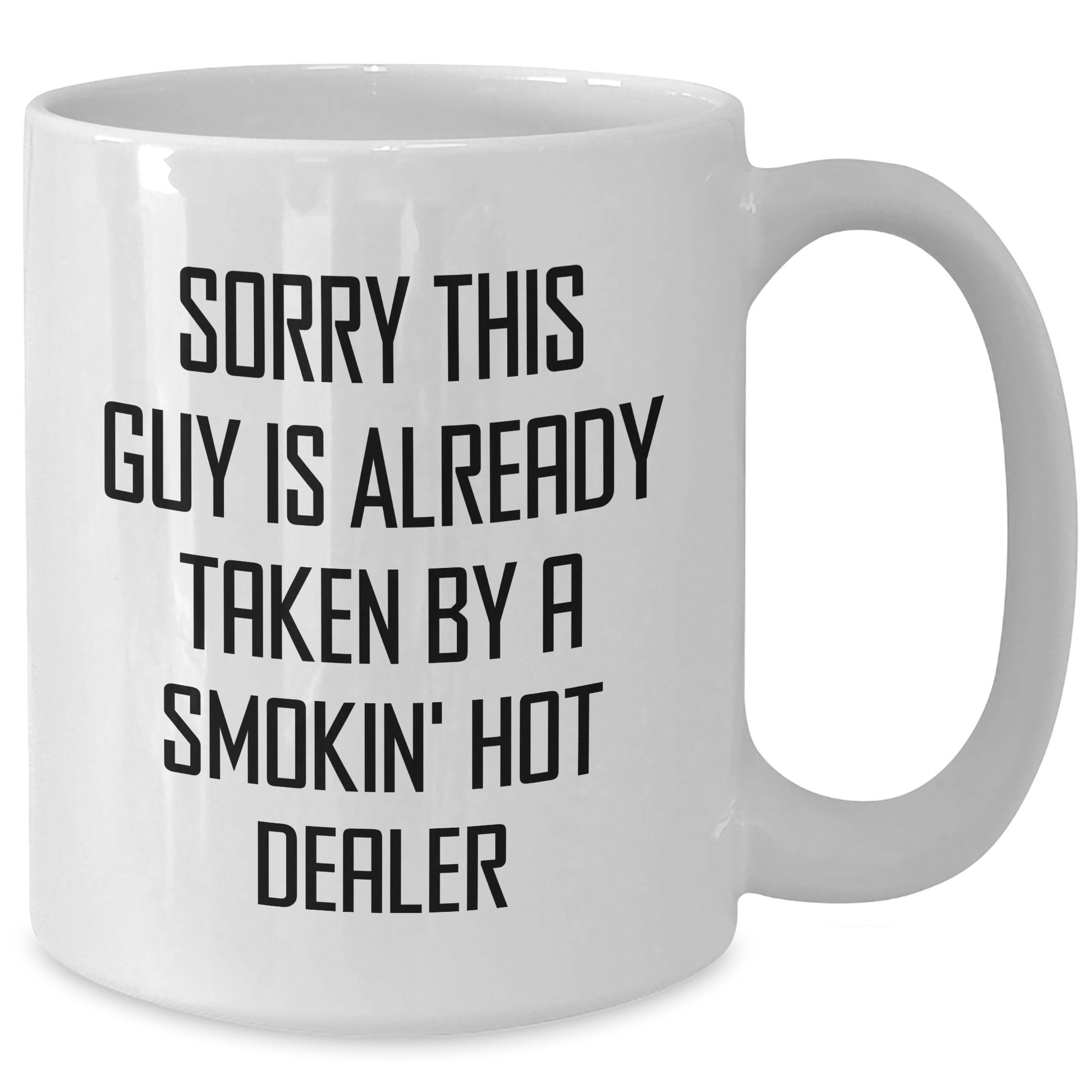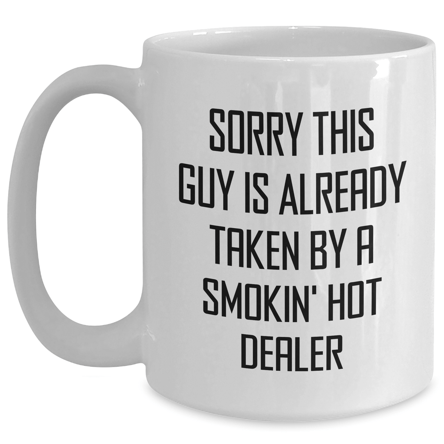 - This funny white coffee mug is the perfect way to show off your love and appreciation for your smokin' hot Dealer