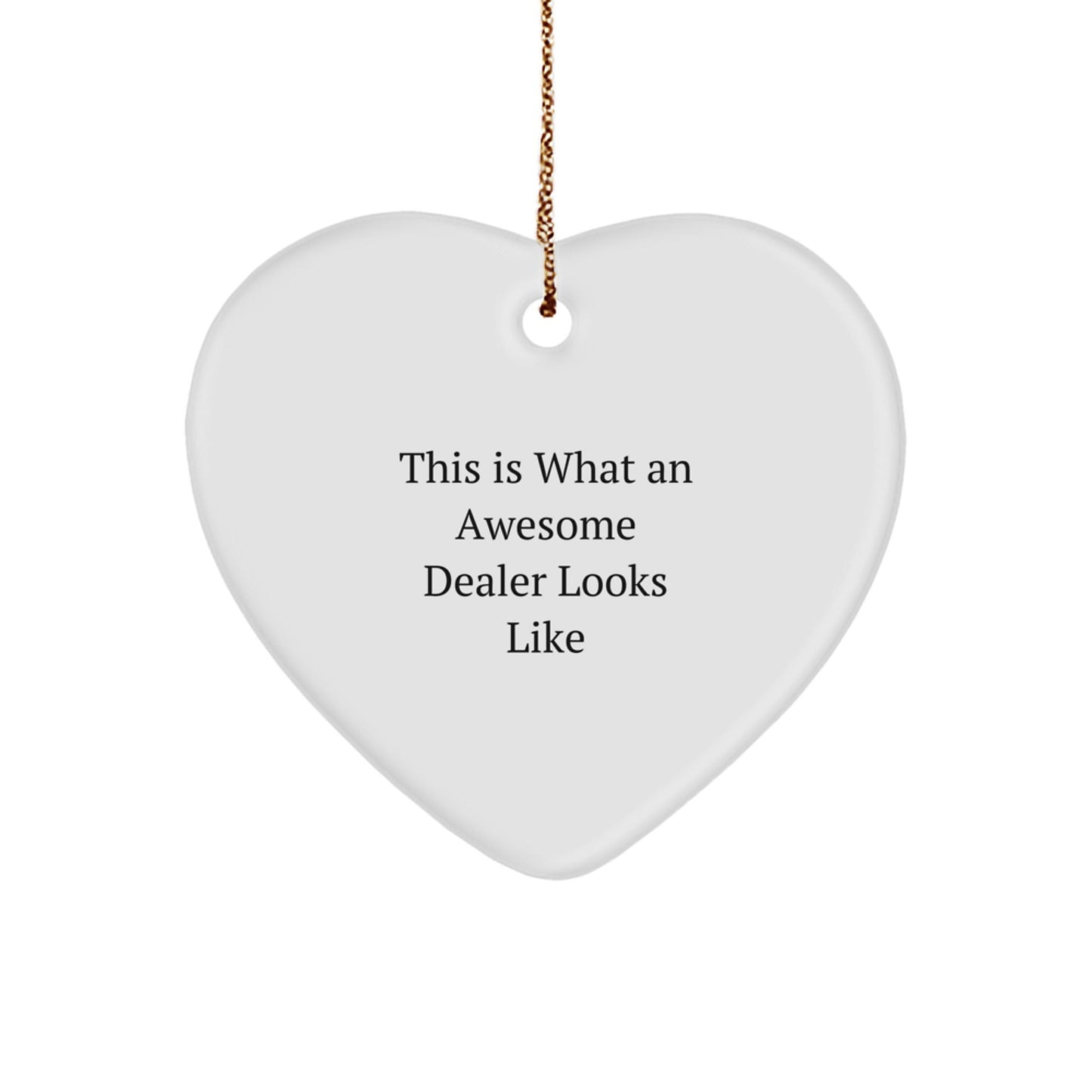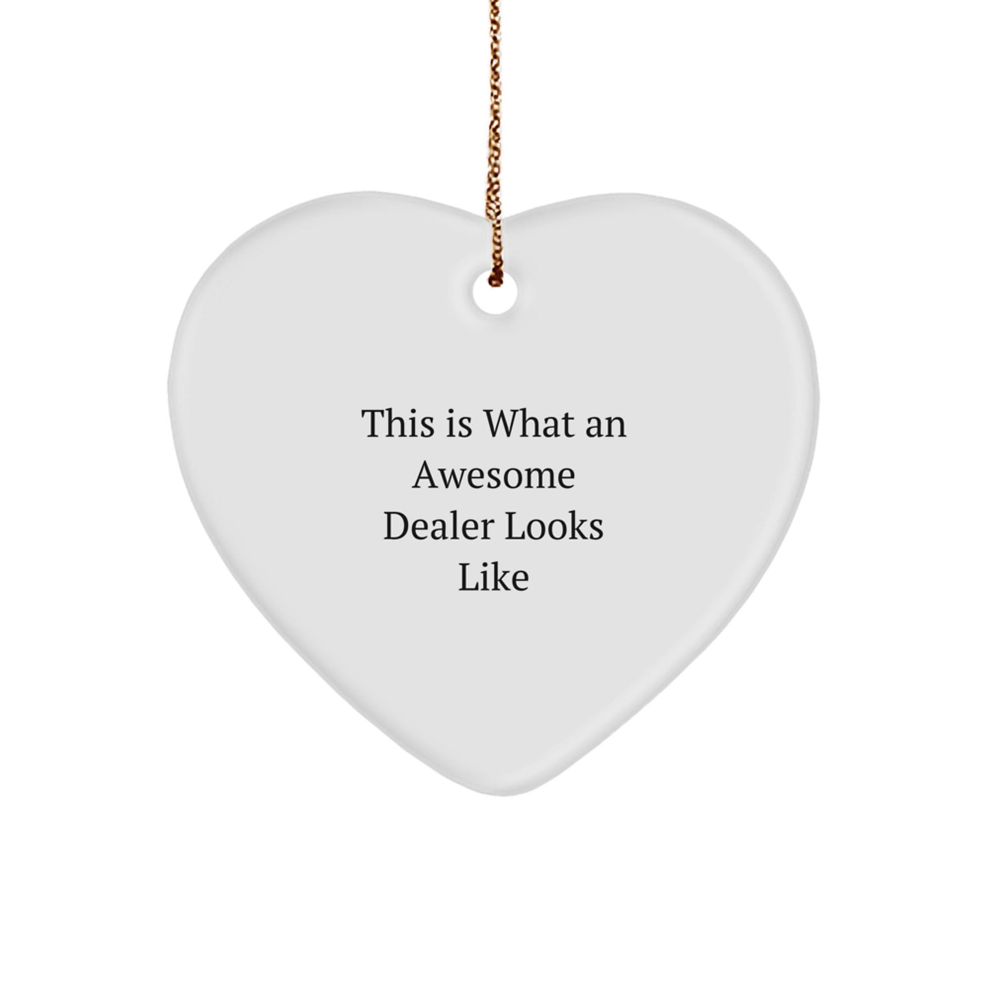 Gift your loved ones a reminder of the importance of being an awesome Dealer, and show them that you care. This heart ornament is a unique and personalized way to express your appreciation and gratitude. Whether you're looking for a Christmas gift, a birthday gift, or just a fun way to decorate your home, this ornament is the perfect choice. So go ahead, get creative, and make this holiday season one to remember!