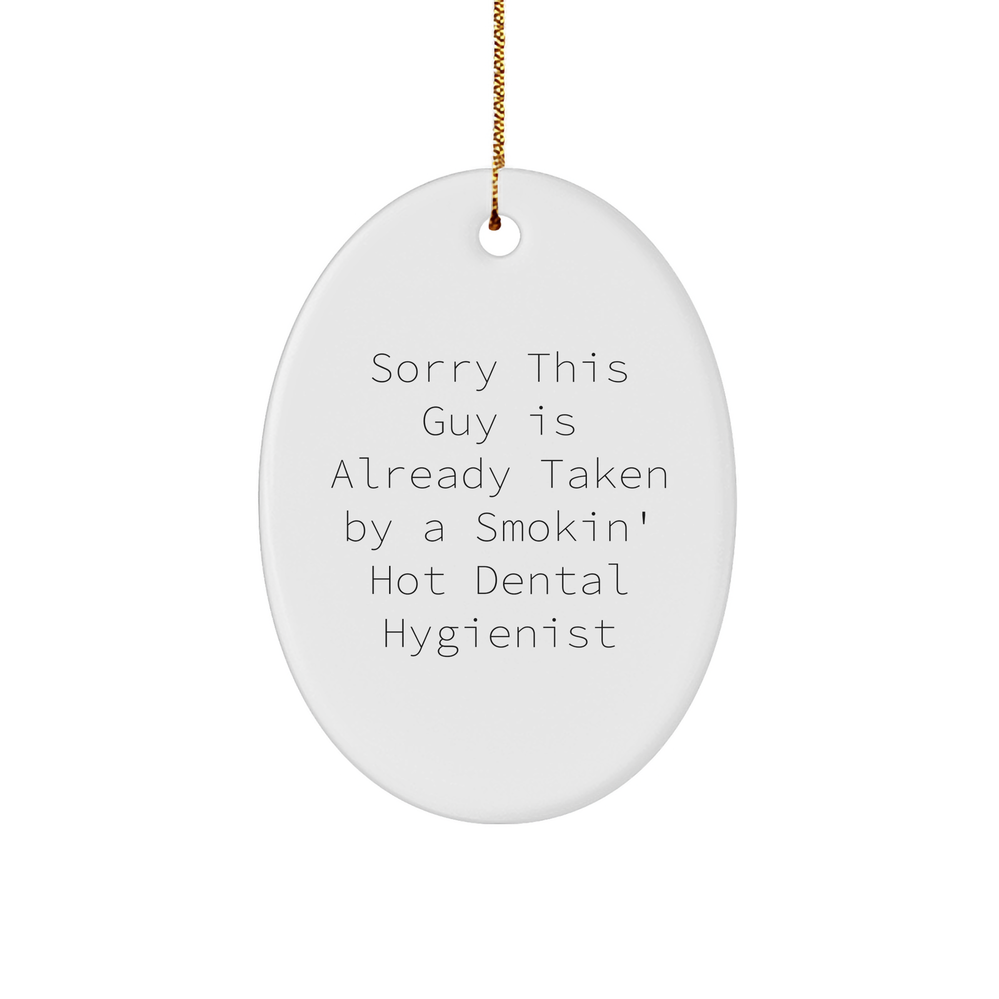 - So why wait? Get your Sorry This Guy Is Already Taken By A Smokin' Hot Dental Hygienist Oval Ornament today and make the holiday season one to remember for the dental hygienist in your life. Send it as a gift for a friend, family member, or coworker - they'll love it!