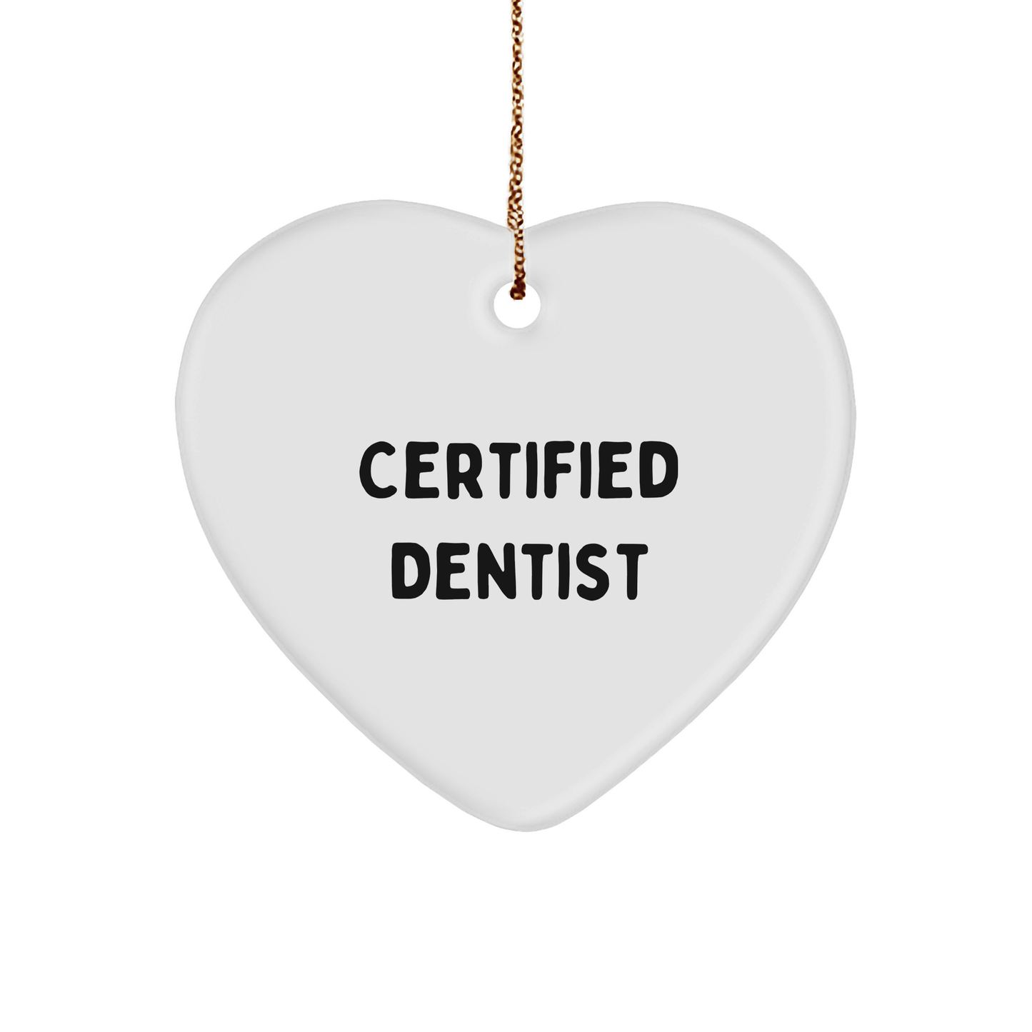 - This funny 'I'm a Certified Dentist, and I'm Here to Fill Your Life with Love' quote heart ornament is a unique and thoughtful gift for dentists, men, women, or anyone who loves dentists. The vibrant colors and heart shape make it a great addition to any room, and the lightweight and resistant design makes it perfect for households with children or pets.