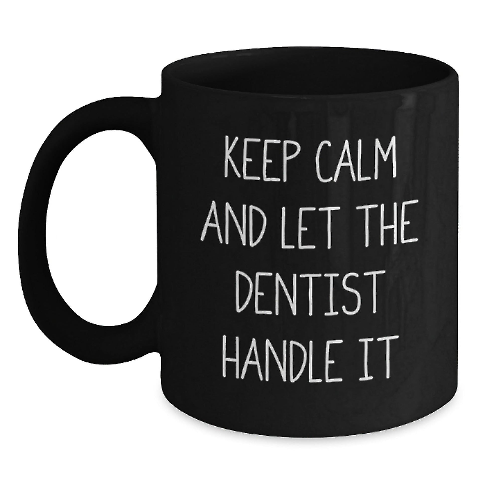 - Experience the perfect blend of humor and gratitude with our 'Keep Calm And Let The Dentist Handle It' black coffee mug, a thoughtful gift for any dentist.