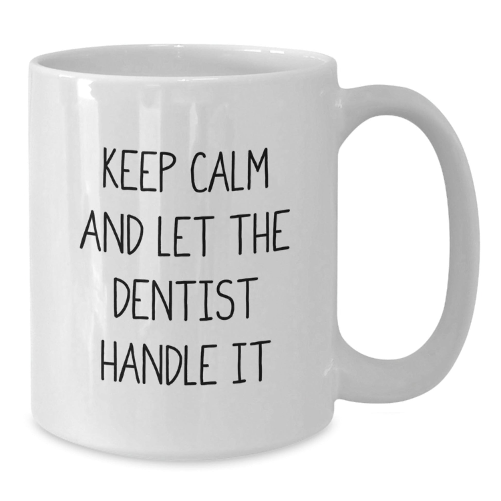 - This funny 'Keep Calm And Let The Dentist Handle It' white coffee mug is the perfect way to show your dentist that you care about their hard work and dedication.