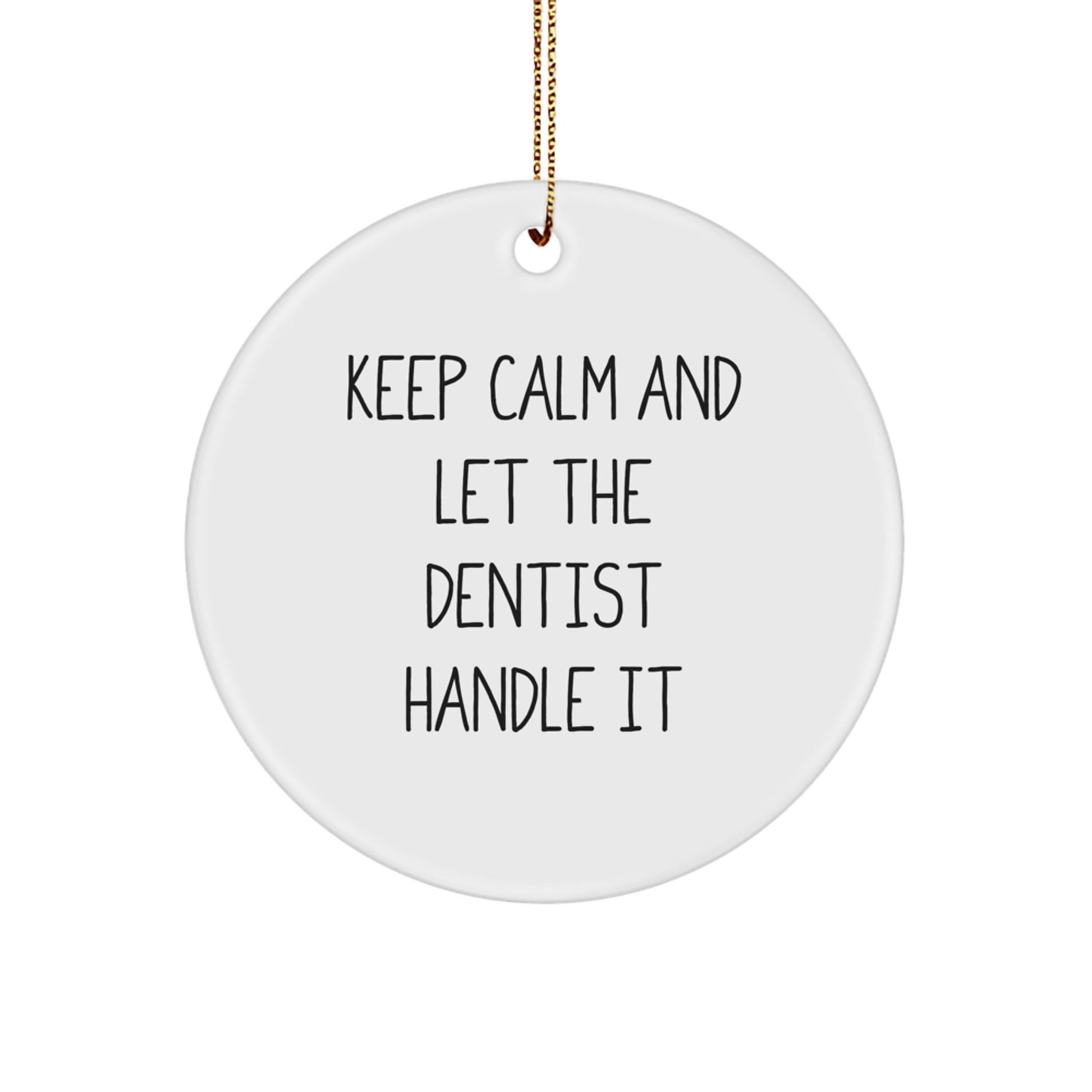 - So why not send a 'Keep Calm And Let The Dentist Handle It' Circle Ornament this holiday season and get ready to make a statement? It's a thoughtful and humorous gift that's sure to bring a smile to your dentist's face.