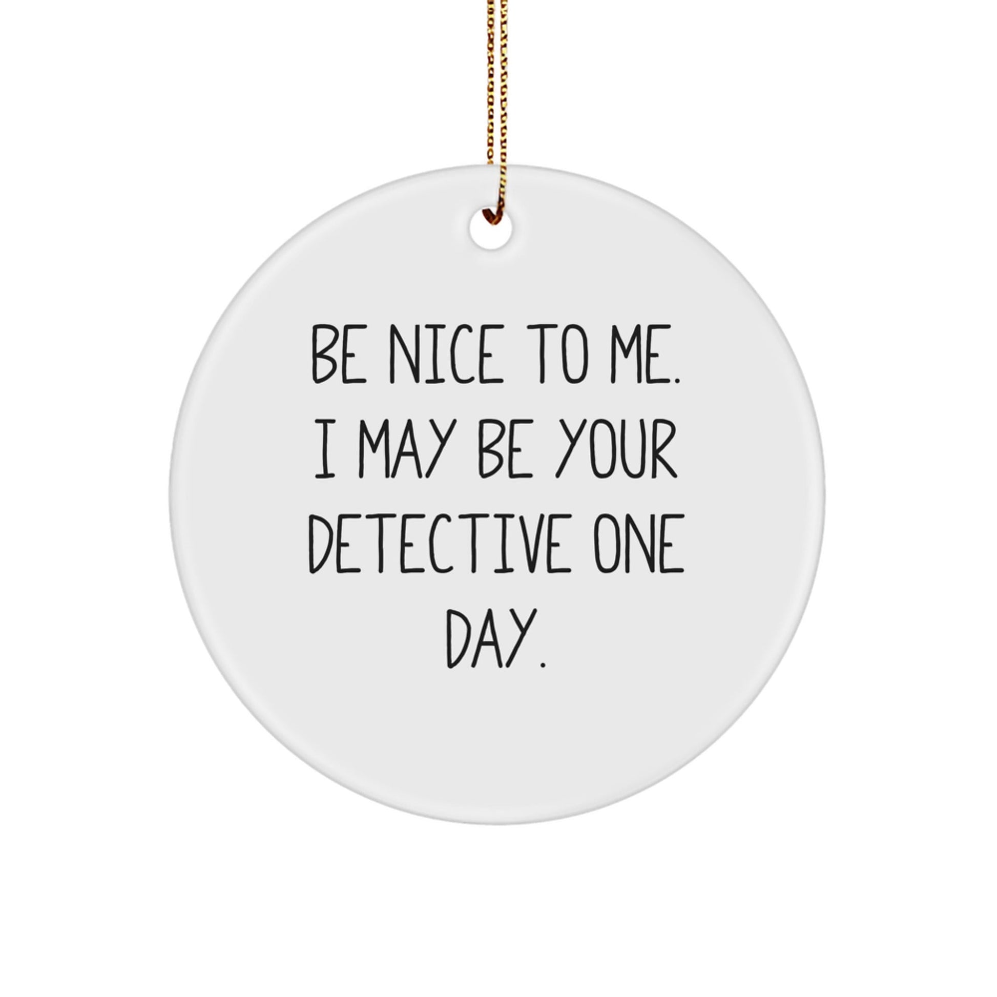 Are you a fan of detectives or know someone who is? This hilarious Circle Ornament, featuring the quote 'Be Nice To Me. I May Be Your Detective One Day.' is the ideal gift for them. Crafted from sturdy MDF with a high-gloss plastic finish, it's lightweight and resistant to breaking, making it a great choice for households with children or pets.