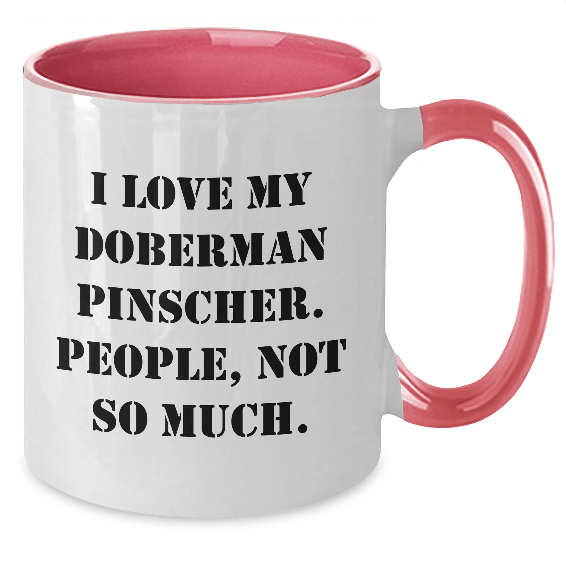 Are you a Doberman Pinscher Dog enthusiast? Do you love the unique charm and charisma of these magnificent creatures? If so, you'll adore this Two Tone Coffee Mug featuring the hilarious quote 'I Love My Doberman Pinscher. People, Not So Much.'