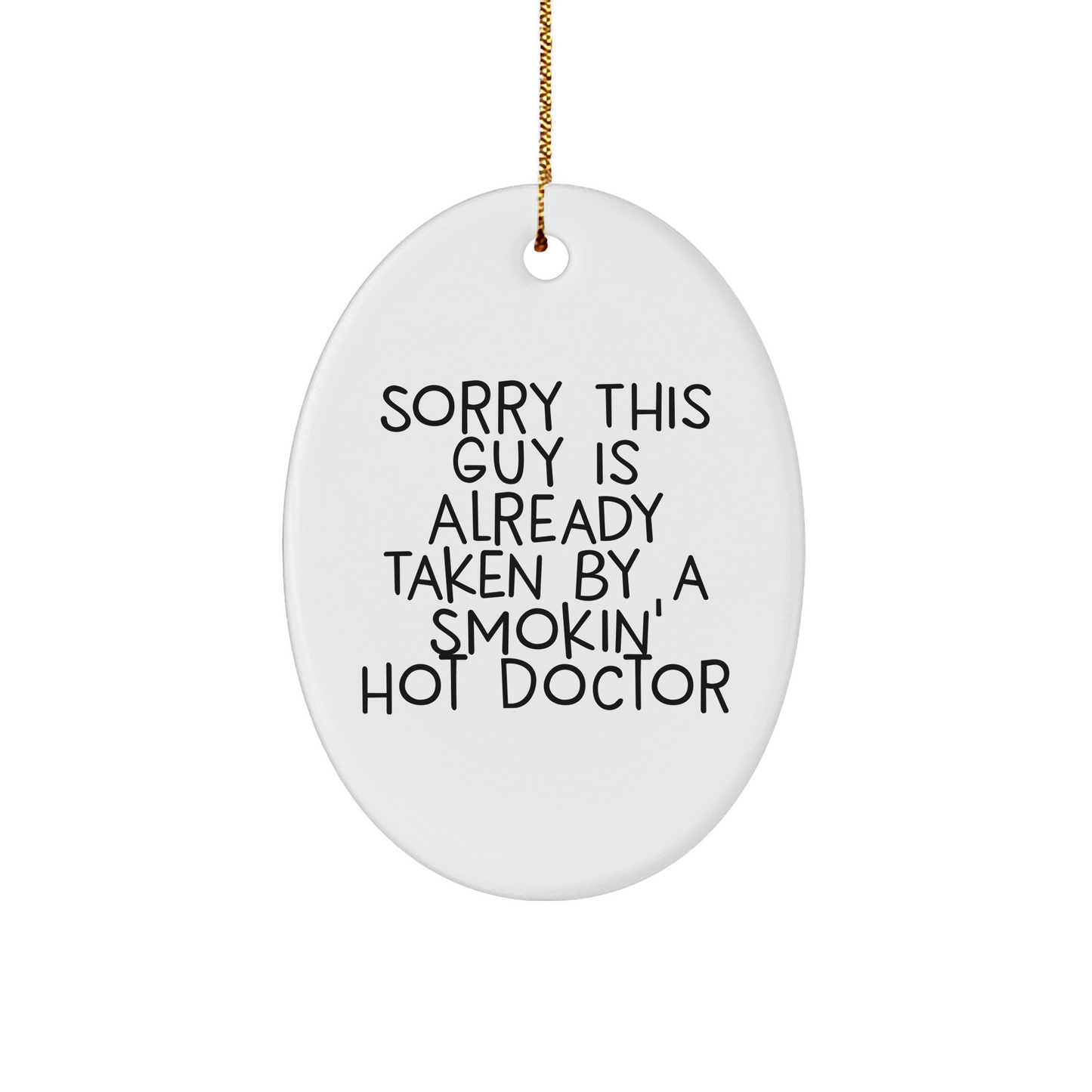 - Get your 'Sorry This Guy Is Already Taken By A Smokin' Hot Doctor' Oval Ornament today and make it a Christmas to remember! Make sure to hang it proudly on your Christmas tree or use it as a decoration for your home.