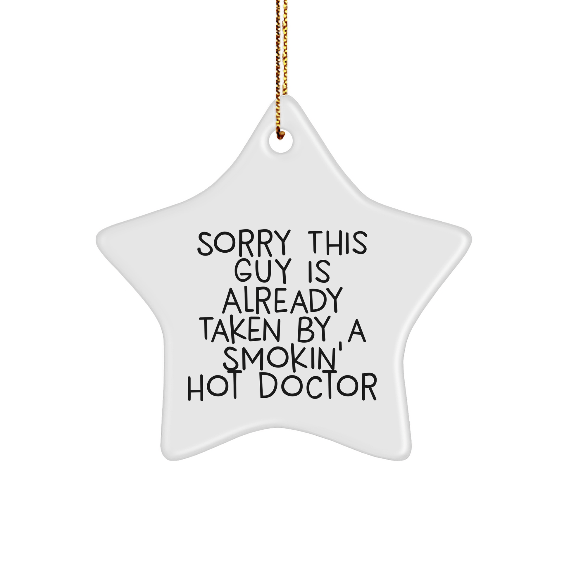 - Don't miss out and make this holiday season one to remember! Give a gift that's truly out of this world - get your 'Sorry This Guy Is Already Taken By A Smokin' Hot Doctor' Star Ornament today!