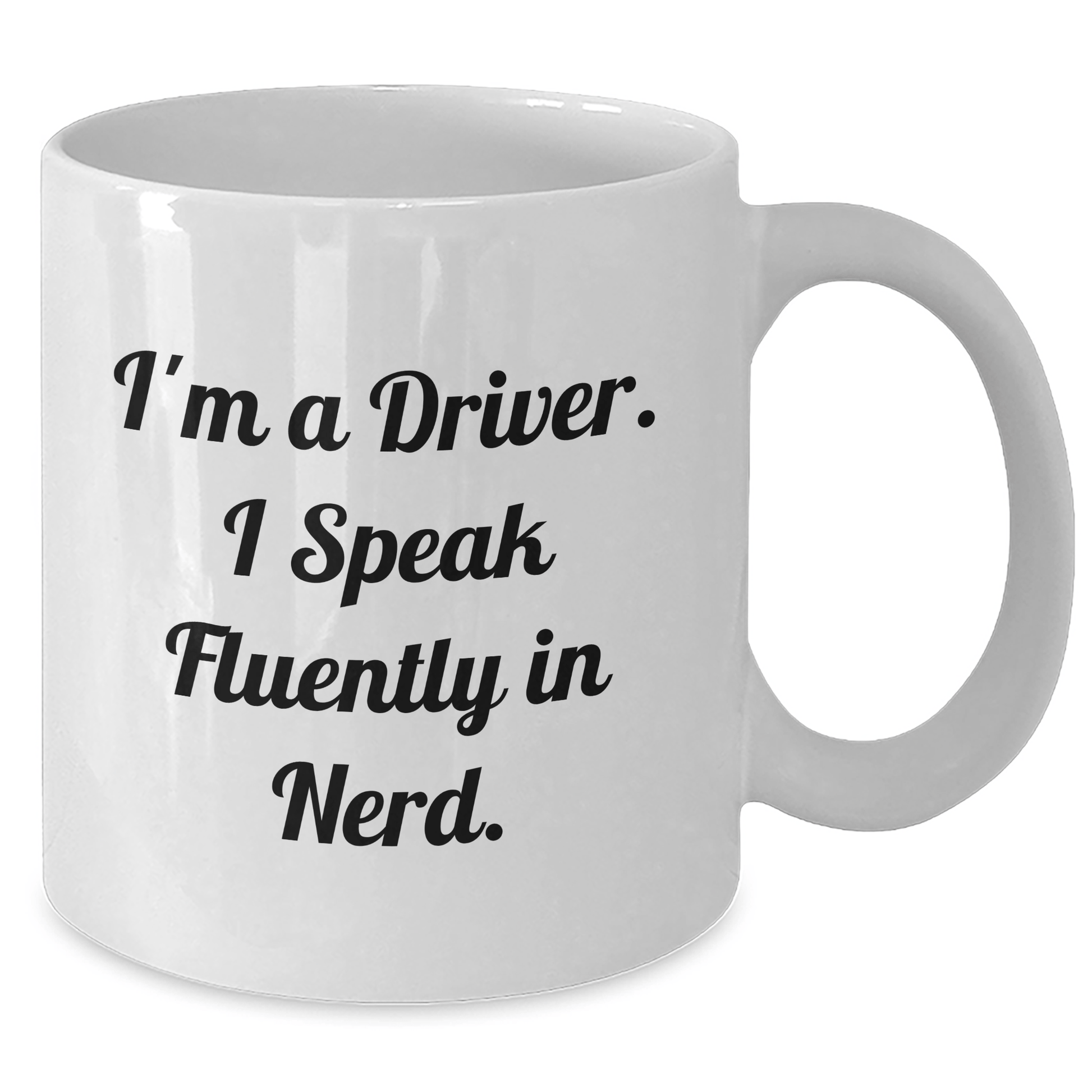 - This funny white coffee mug is a unique and thoughtful gift for the driver in your life, whether it's a friend, family member, or coworker.