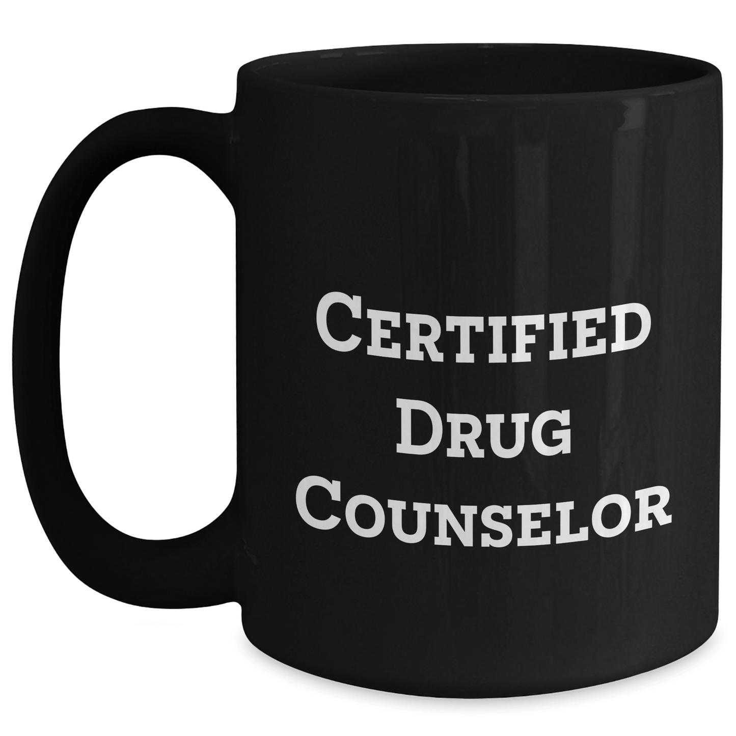 - Get the perfect gift for your loved one with a career in drug counseling with this 'Certified Drug Counselor' black coffee mug, available in 11oz or 15oz capacities, making it a thoughtful and unique way to show appreciation.