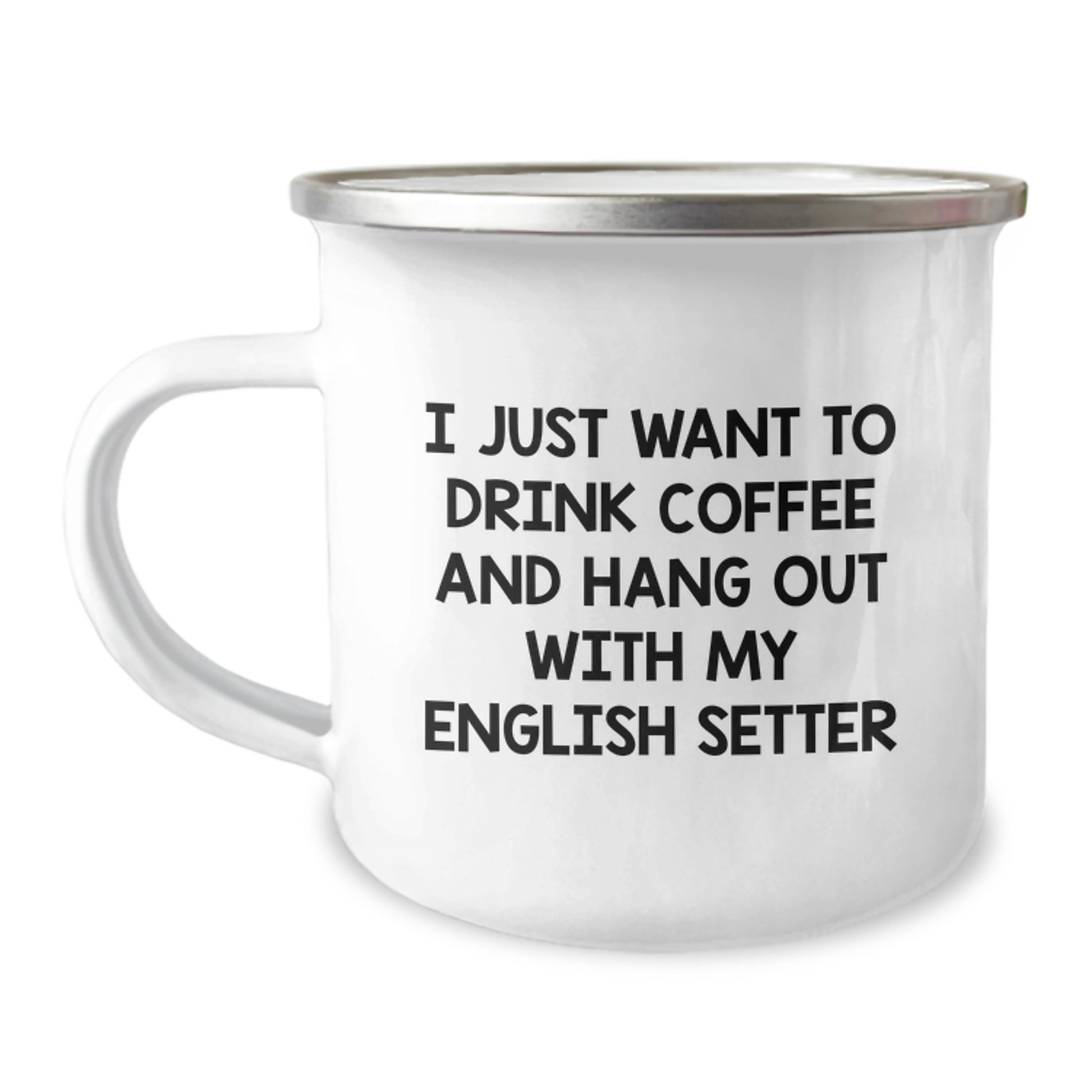- This Camping Mug is the paw-fect gift for English Setter Dog enthusiasts who love to hang out with their furry friends and a cup of coffee.