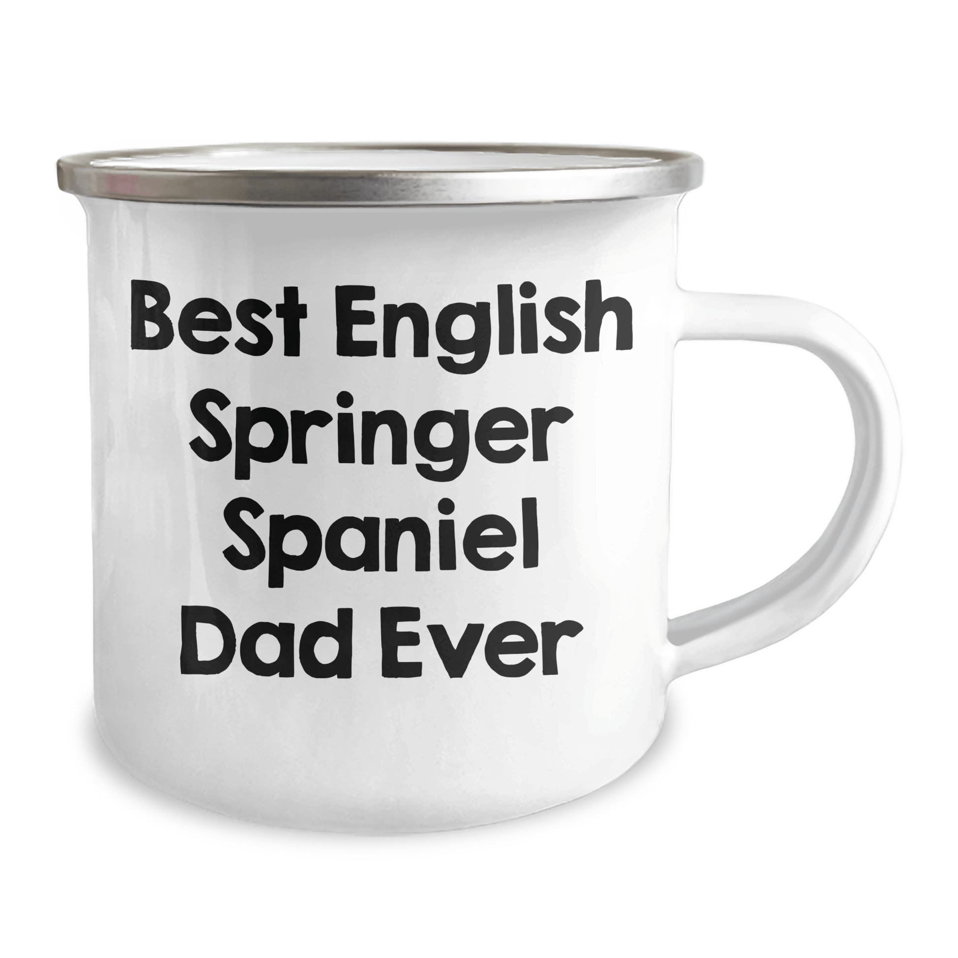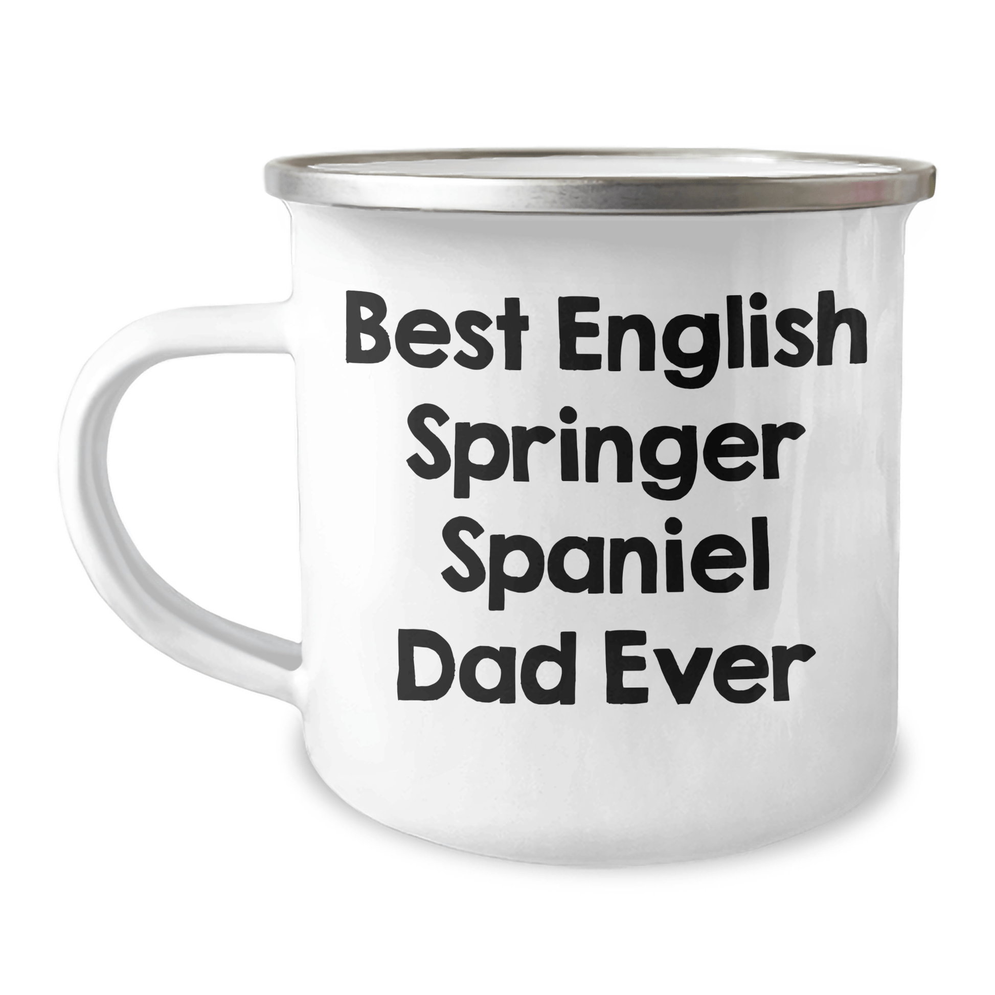 - Make a statement with this unique English Springer Spaniel Dog Camping Mug, perfect for the 'Best English Springer Spaniel Dad Ever' in your life! With its 12 oz capacity, stainless steel with enamel finish, and permanent printing, this mug is built to last and withstand the rigors of camping trips and daily use.