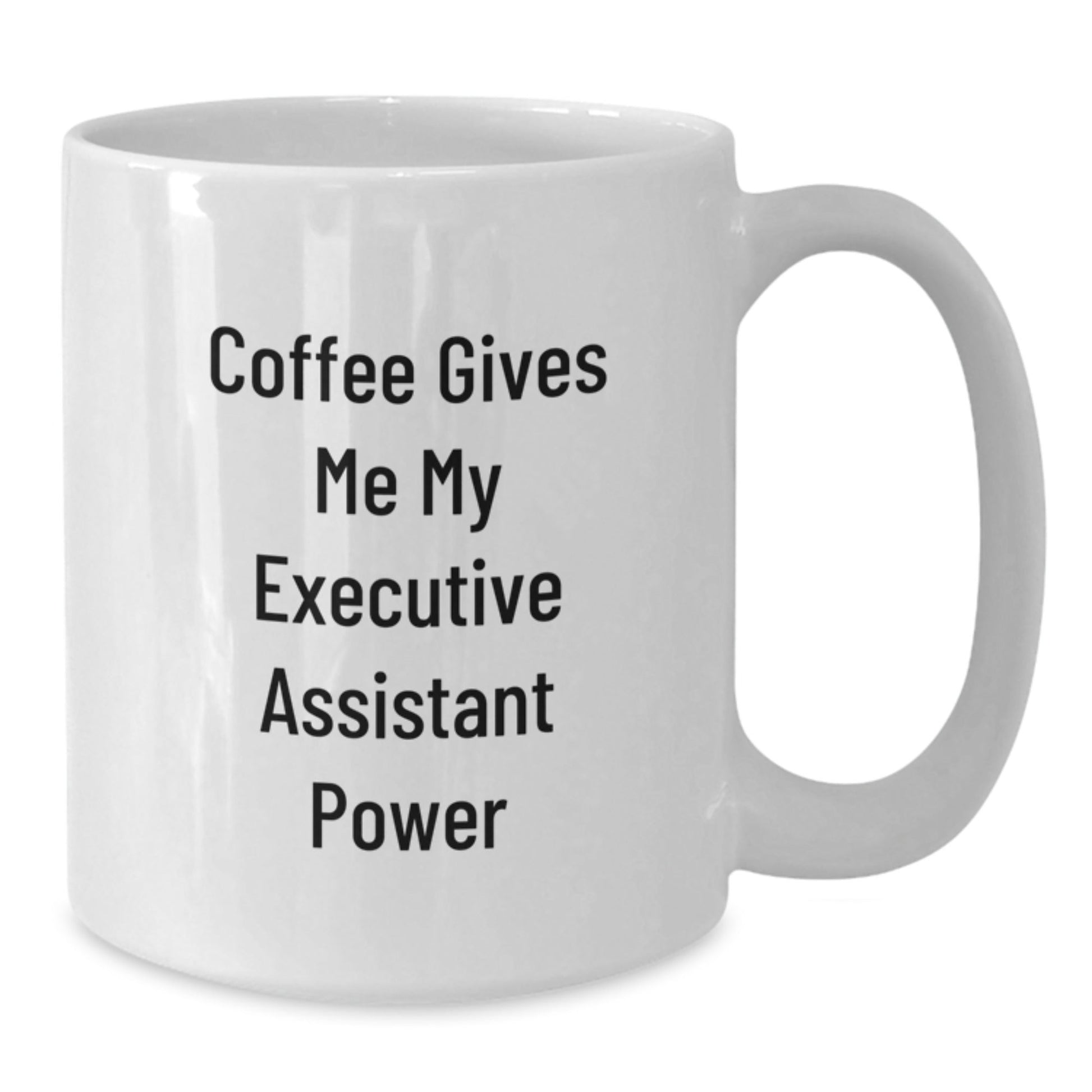 Are you a fan of executive assistants? Do you have a friend or colleague who's an executive assistant? Look no further! This funny white coffee mug is the ideal gift for them. 'Coffee Gives Me My Executive Assistant Power' is a hilarious quote that will surely bring a smile to their face.