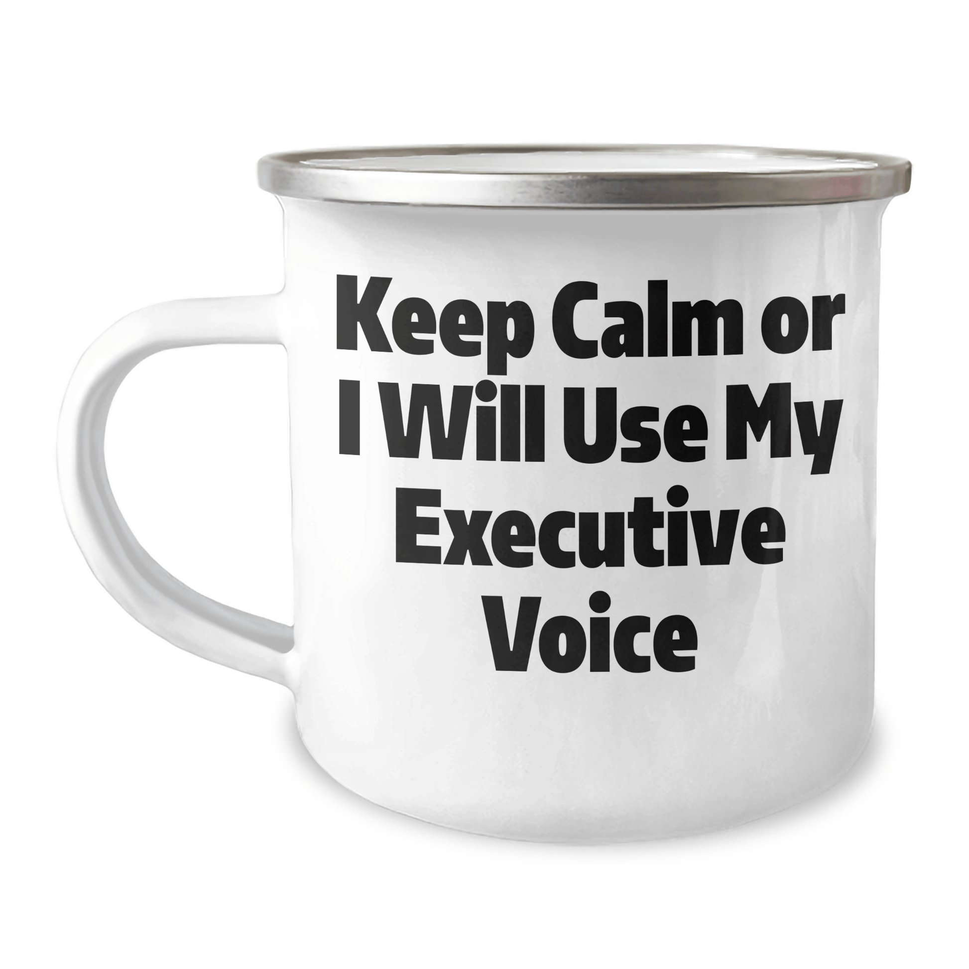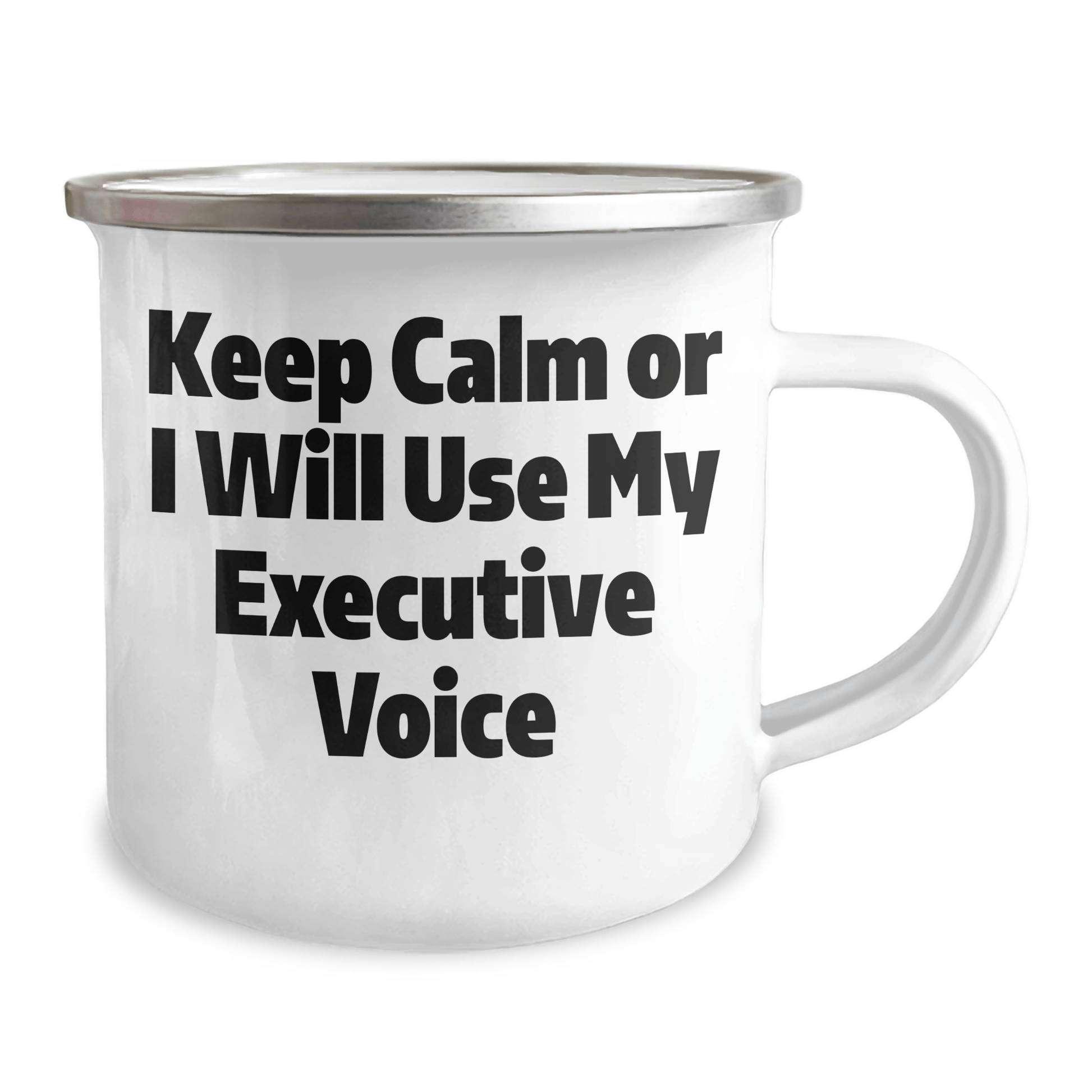 Are you looking for a unique and funny gift for the executive in your life? Something that will make them laugh and feel appreciated? Look no further! Our Keep Calm Or I Will Use My Executive Voice executive camping mug is the perfect choice. Made of stainless steel with an enamel finish, this 12 oz capacity mug is sturdy and easy to clean. The permanent printing won't fade after washing, ensuring your gift remains a treasured keepsake for years to come. Whether you're a friend, coworker, or family member looking for a graduation gift, this executive camping mug is sure to bring a smile to their face. So why wait? Send this thoughtful gift to the executive in your life today!