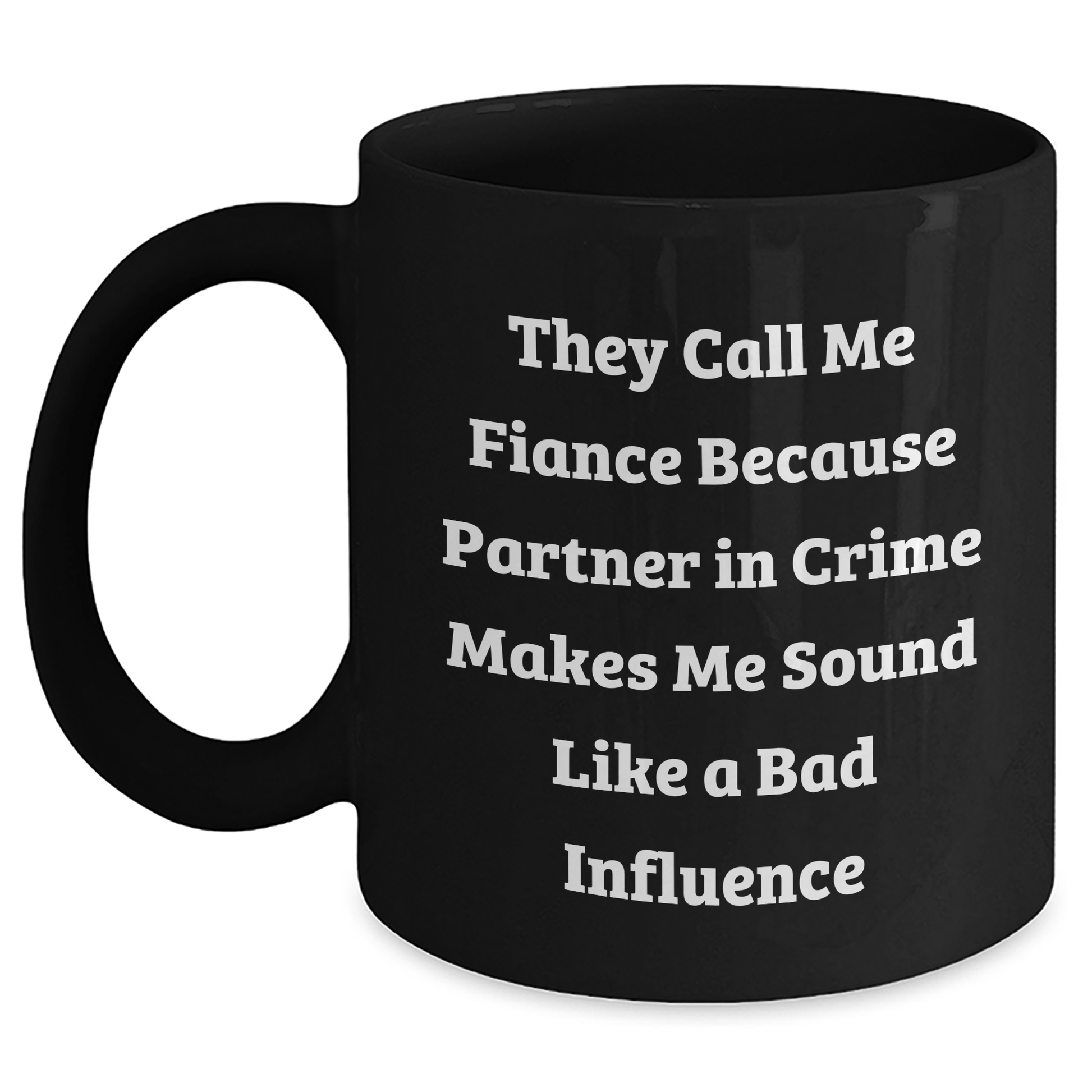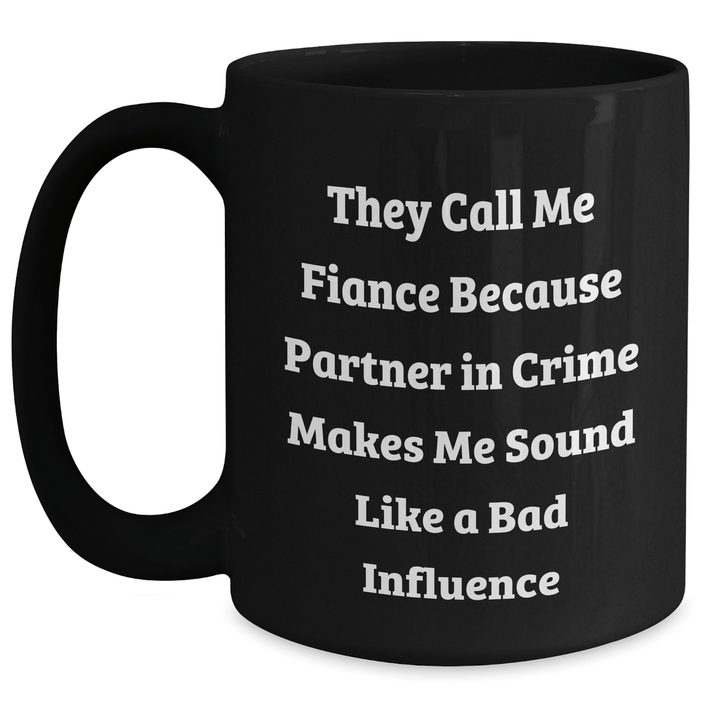 Are you looking for a unique and funny gift for your fiance? Look no further! This black coffee mug with the quote 'They Call Me Fiance Because Partner In Crime Makes Me Sound Like A Bad Influence' is the ideal gift for any occasion, especially graduation. Made of ceramic, this mug is microwave and dishwasher safe, making it easy to clean and use. Whether you're a friend, family member, or coworker, this mug is a thoughtful gift for any occasion.