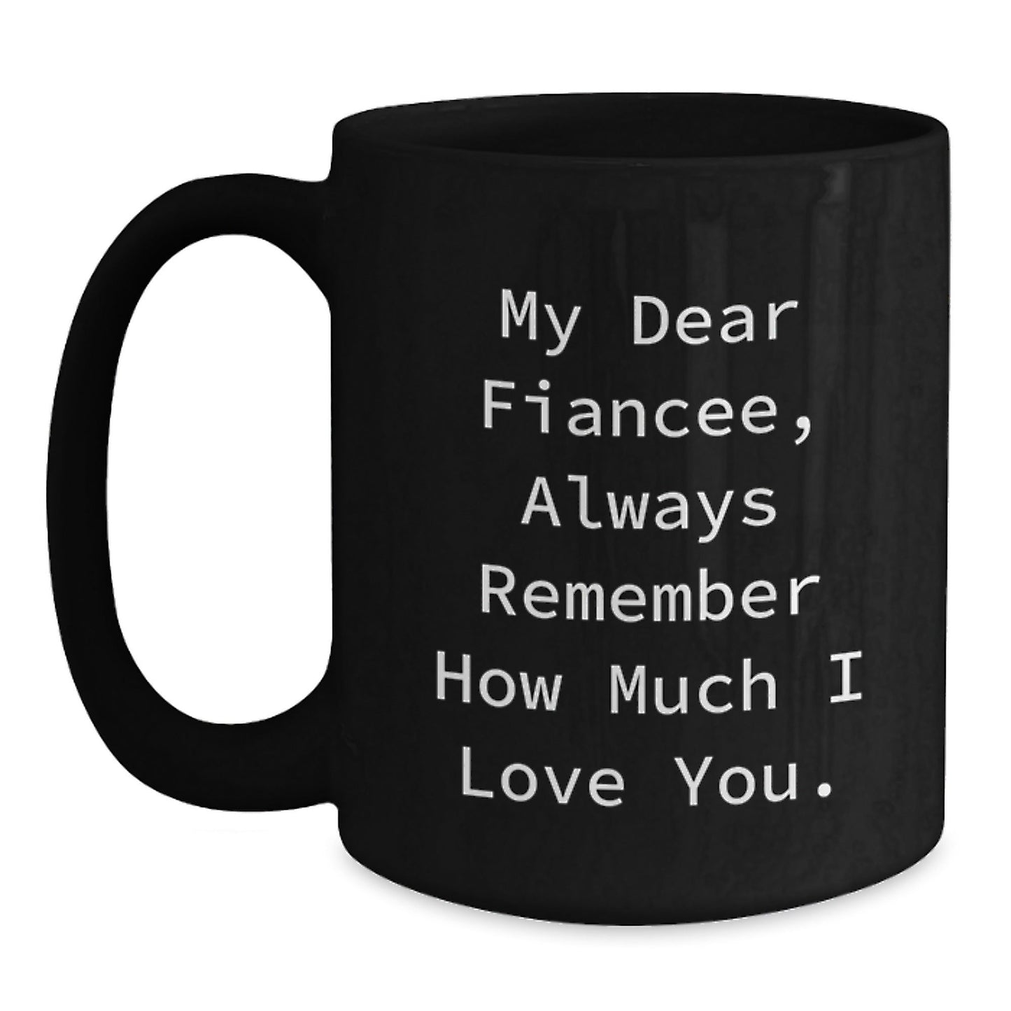Don't miss out on this opportunity to make your Fiancee feel loved and appreciated. Order this 'My Dear Fiancee, Always Remember How Much I Love You.' Black Coffee Mug today and see the smile on her face!