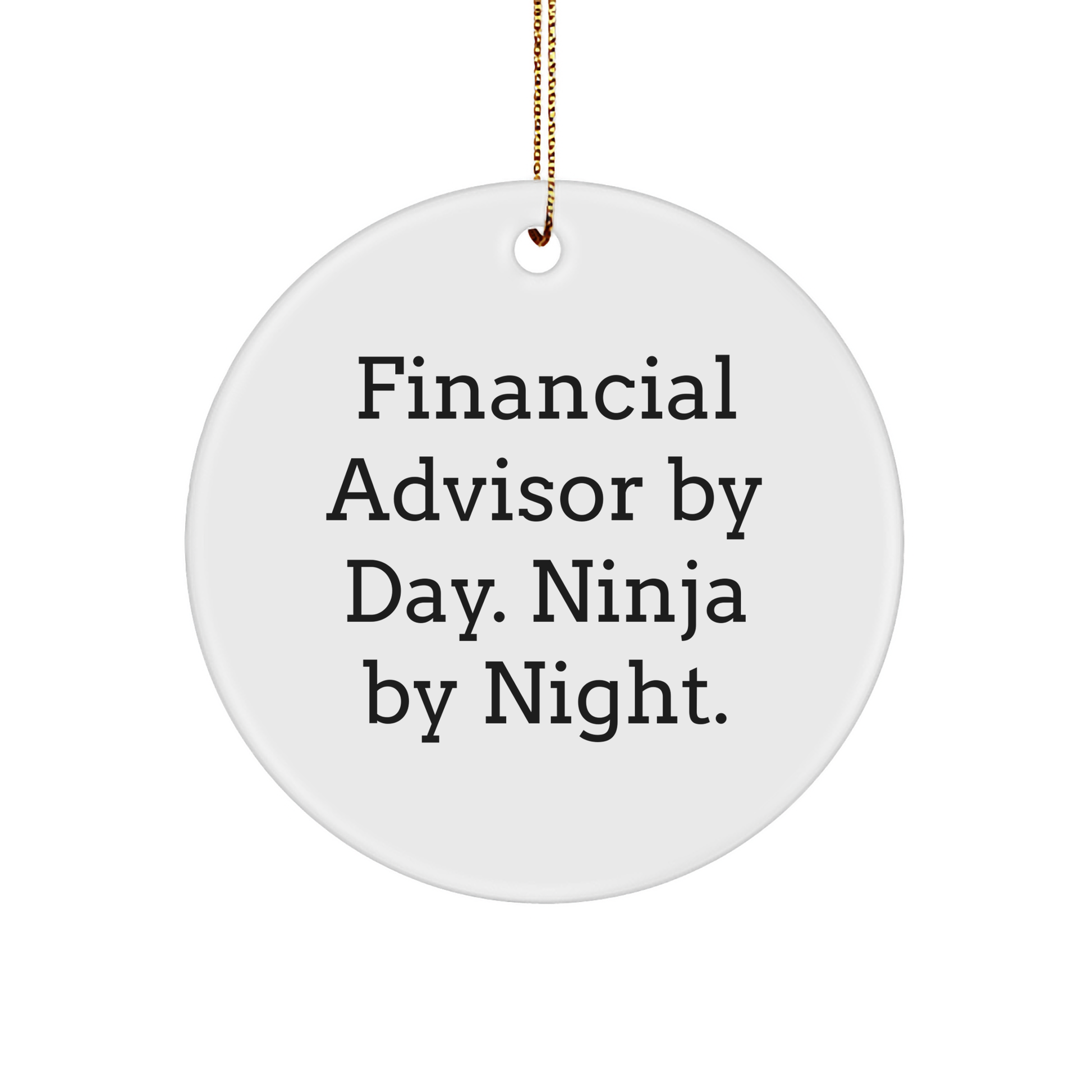- Add a touch of humor to your Financial Advisor's holiday decor with this unique Circle Ornament, featuring the quote 'Financial Advisor By Day. Ninja By Night.'