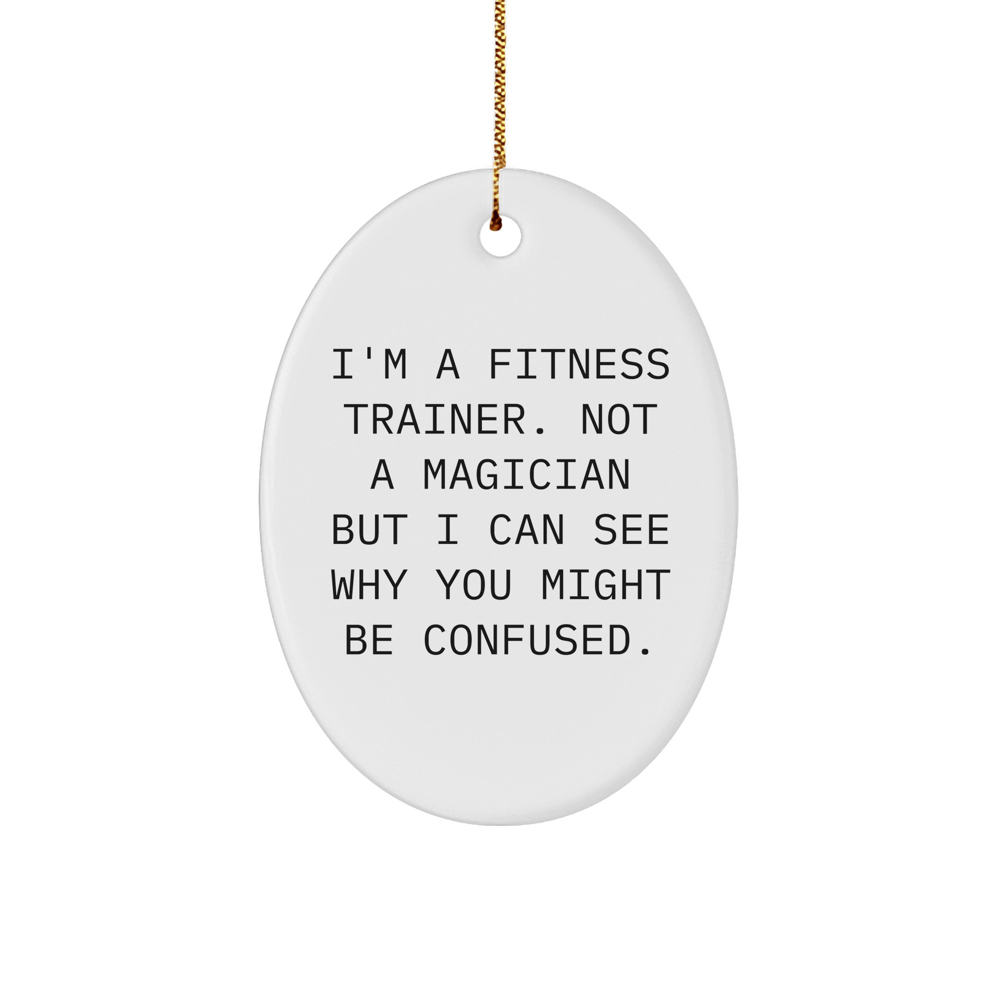 Are you looking for a unique and funny gift for the fitness trainer in your life? Look no further! This oval ornament is a great way to show your appreciation for their hard work and dedication. With its bright and vibrant colors, it's a perfect addition to any room.