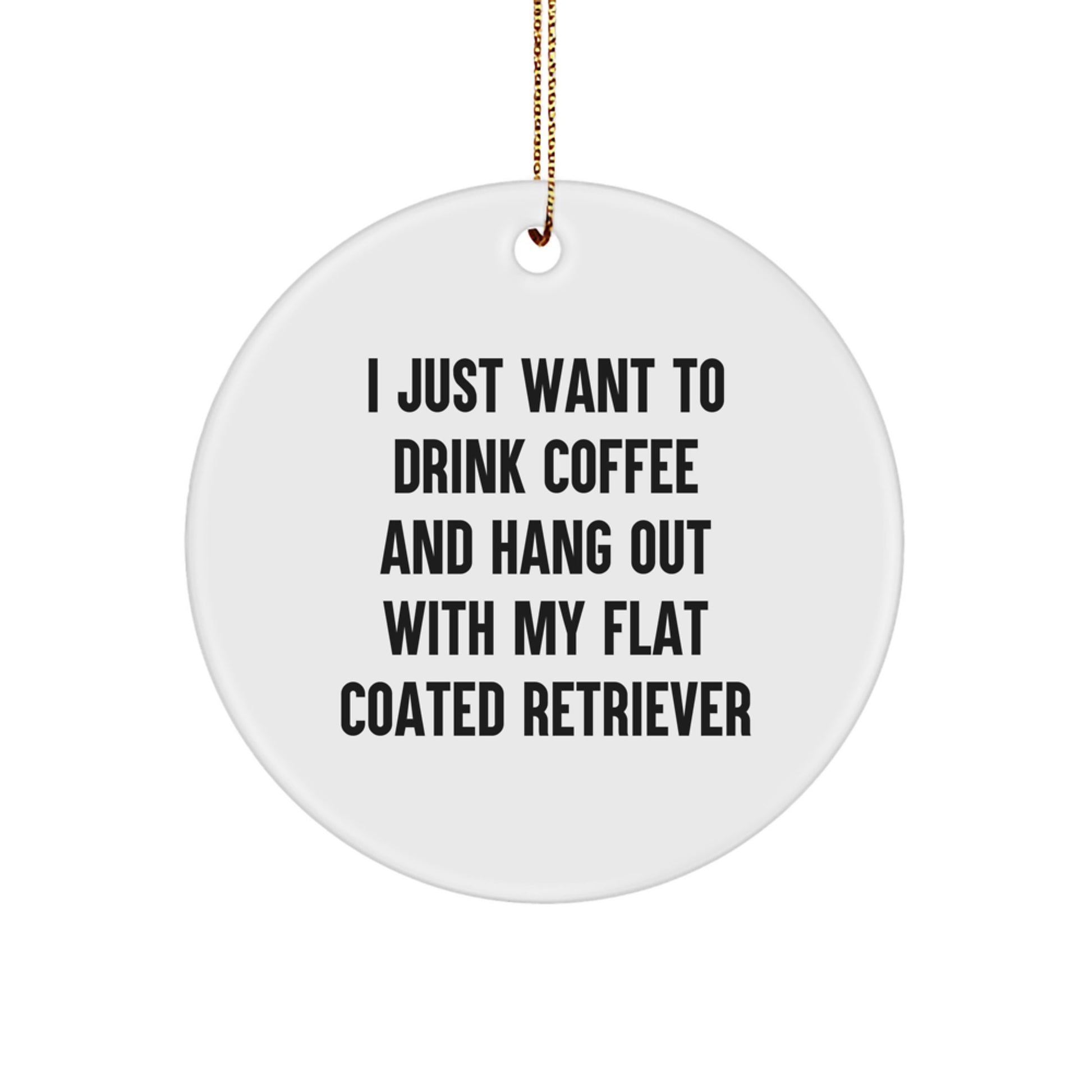- Brighten up your Christmas tree with this funny circle ornament featuring a Flat Coated Retriever Dog and the quote 'I Just Want to Drink Coffee and Hang Out with My Flat Coated Retriever'. A unique gift for Flat Coated Retriever Dog lovers.