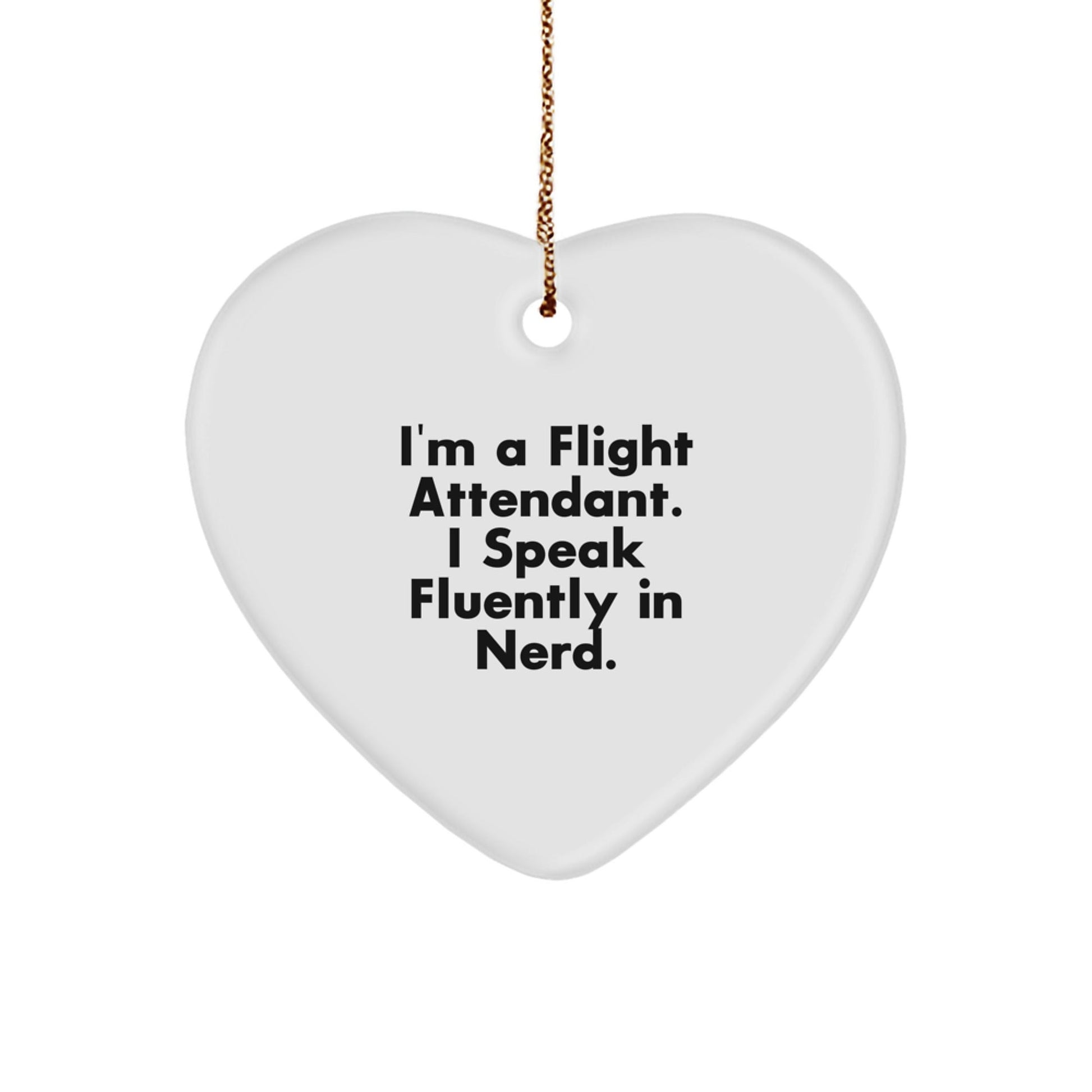 Looking for a unique gift for a Flight Attendant who's a nerd at heart? This funny heart-shaped ornament is the perfect way to show your appreciation for their hard work and quirky sense of humor. The vibrant design features the quote 'I'm A Flight Attendant. I Speak Fluently In genius.' in bright, bold letters, making it a standout addition to any Christmas tree or office decor.