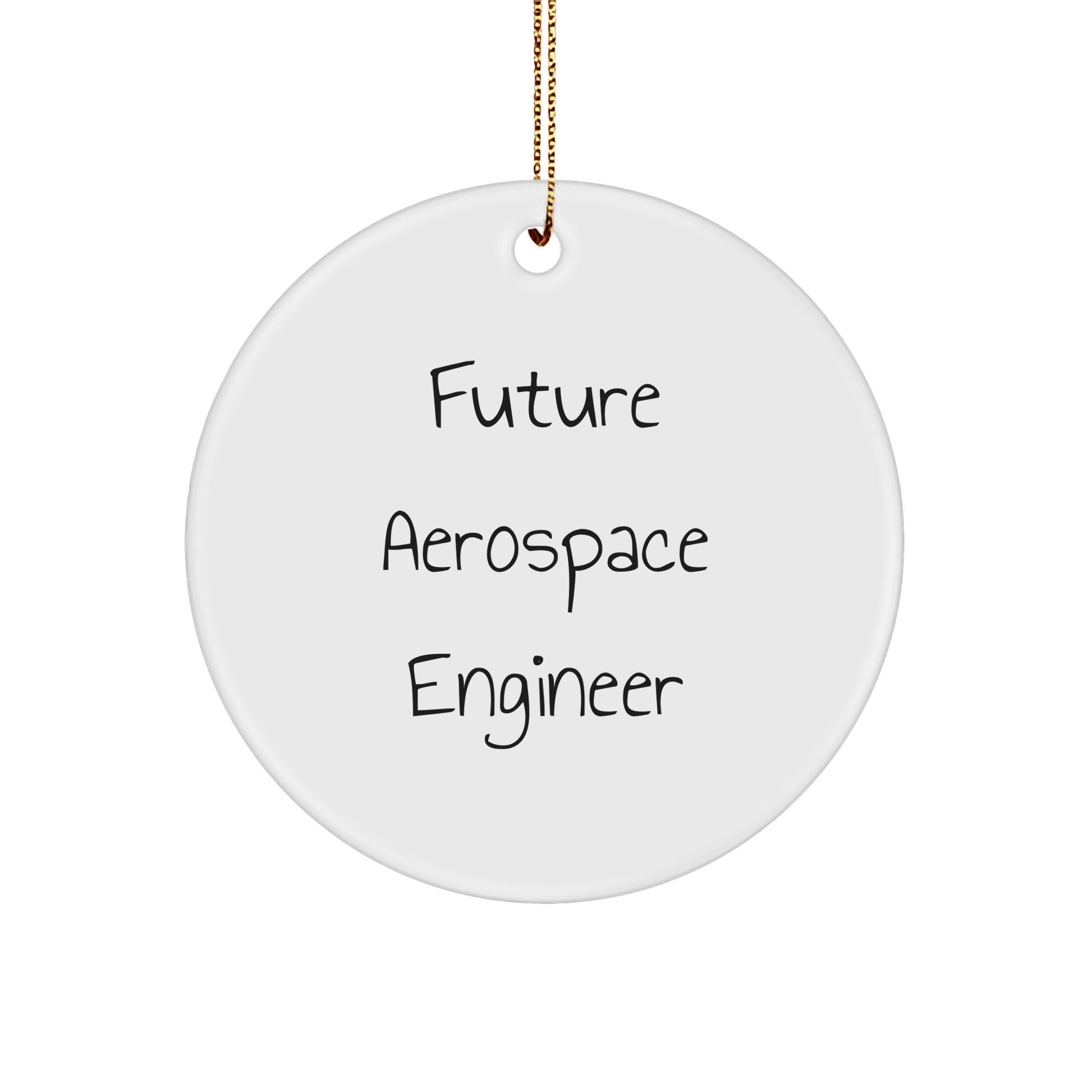 - This circle ornament is a unique and thoughtful gift for the aerospace engineer in your life, featuring the funny quote 'Future Aerospace Engineer' in a playful and encouraging tone.