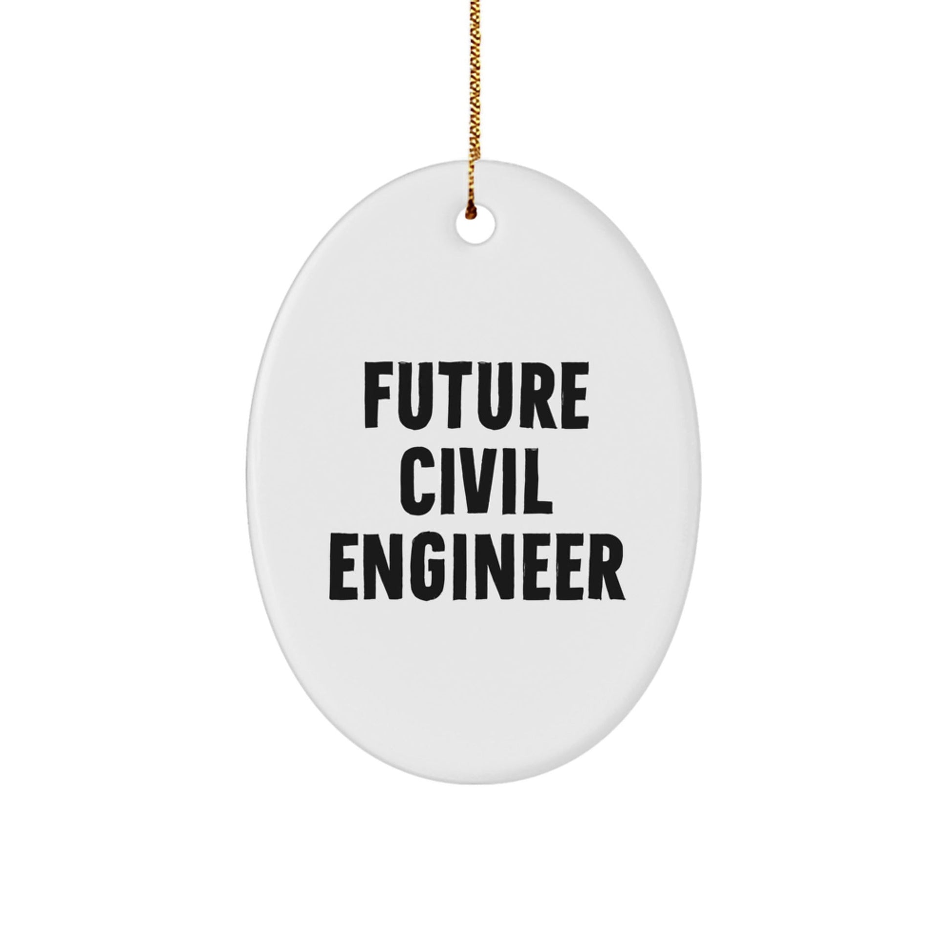 As a Civil Engineer enthusiast, are you looking for a unique gift for someone special? Or perhaps you're a Future Civil Engineer yourself and want to celebrate your passion? Look no further! Our Oval Ornament is designed specifically for you, featuring the inspiring quote