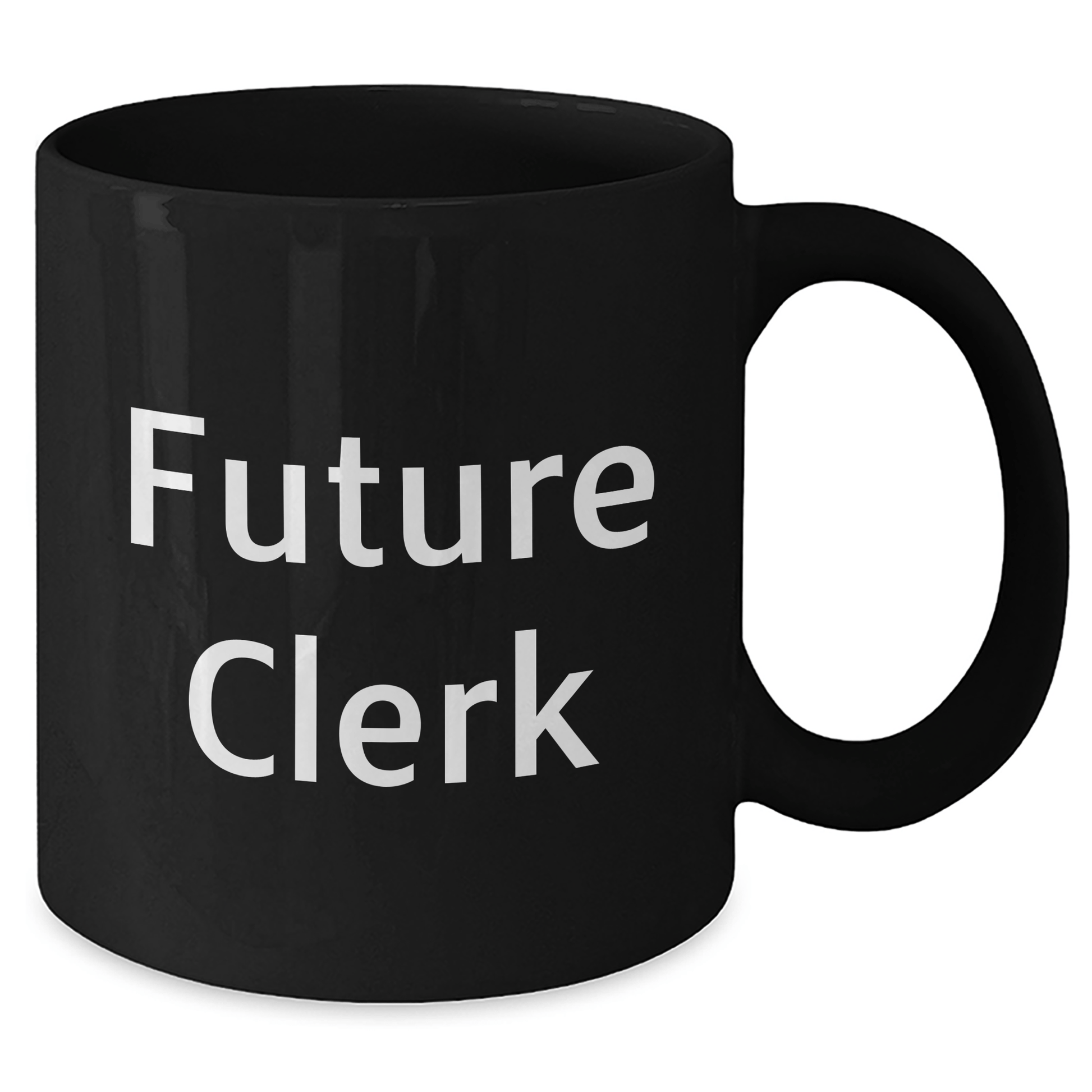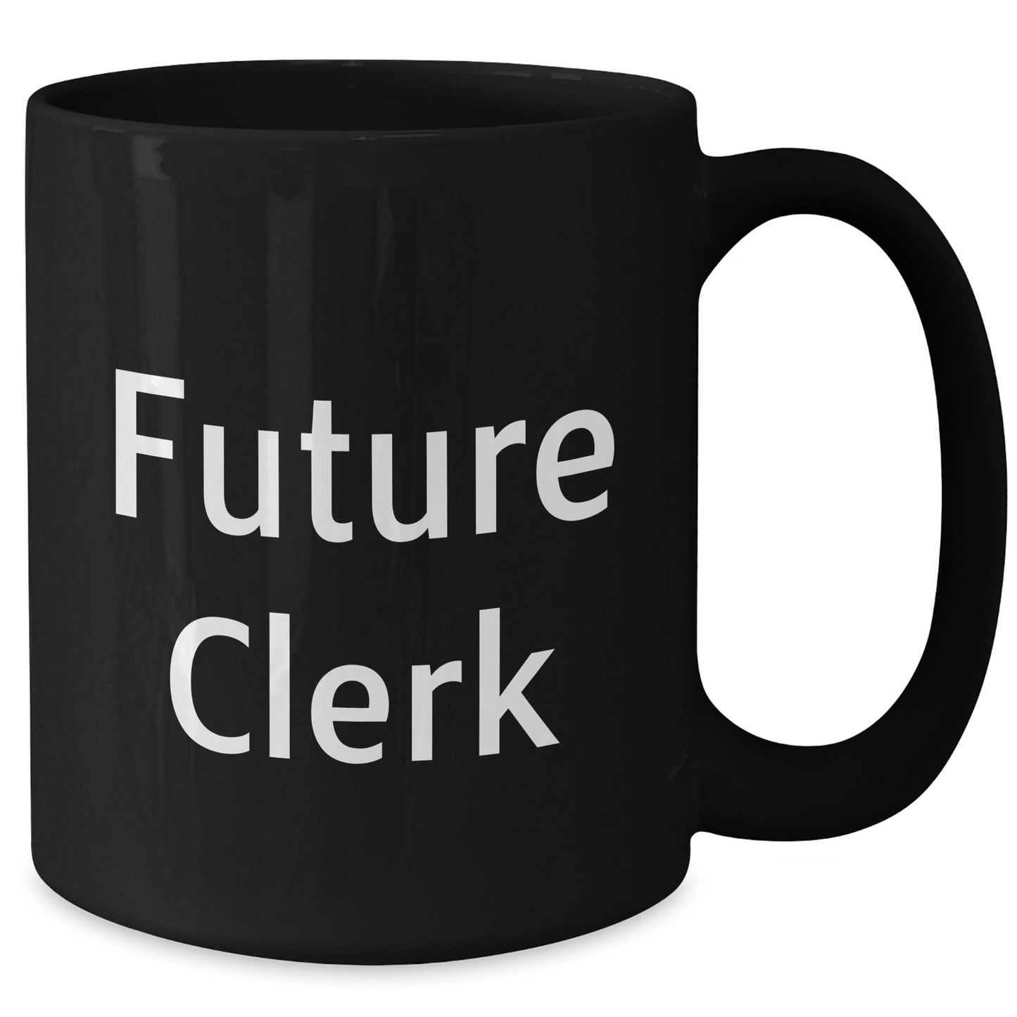 - As a gift for the soon-to-be clerk, this black coffee mug is a thoughtful and personalized token of appreciation. The quote 'Future Clerk' serves as a reminder of their future goals and aspirations. Make it a special and meaningful addition to their morning routine.