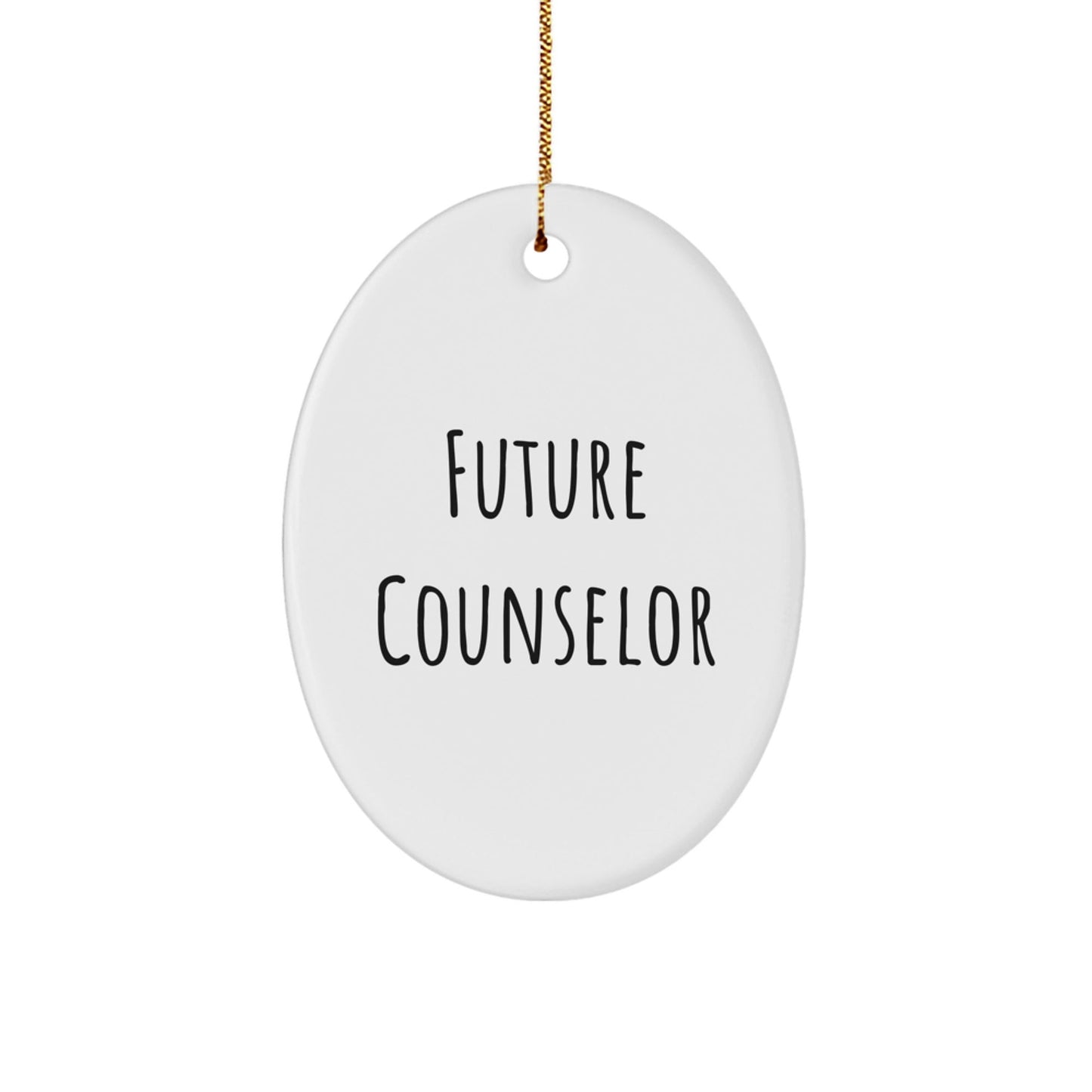 - This Oval Ornament is the perfect way to express your appreciation for the Counselor in your life, with its thoughtful quote 'Future Counselor' and durable design that withstands the test of time, making it a treasured keepsake for years to come. 250-300 characters.