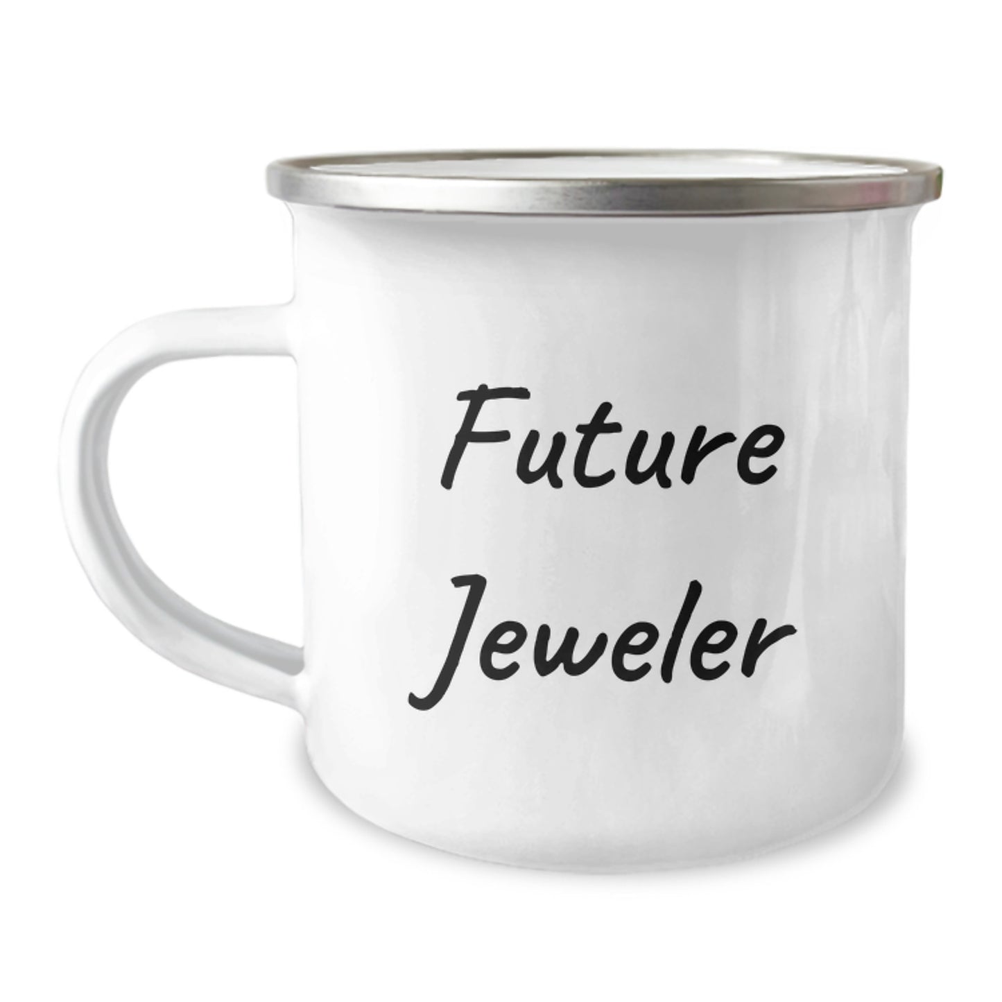 This stainless steel mug with enamel finish holds 12 oz of joy, and its permanent printing won't fade even after repeated washing. It's the ideal companion for any Jeweler who loves to camp under the stars or simply enjoy a hot cup of coffee in the morning. The 'Future Jeweler' quote is a delightful reminder that the best is yet to come.