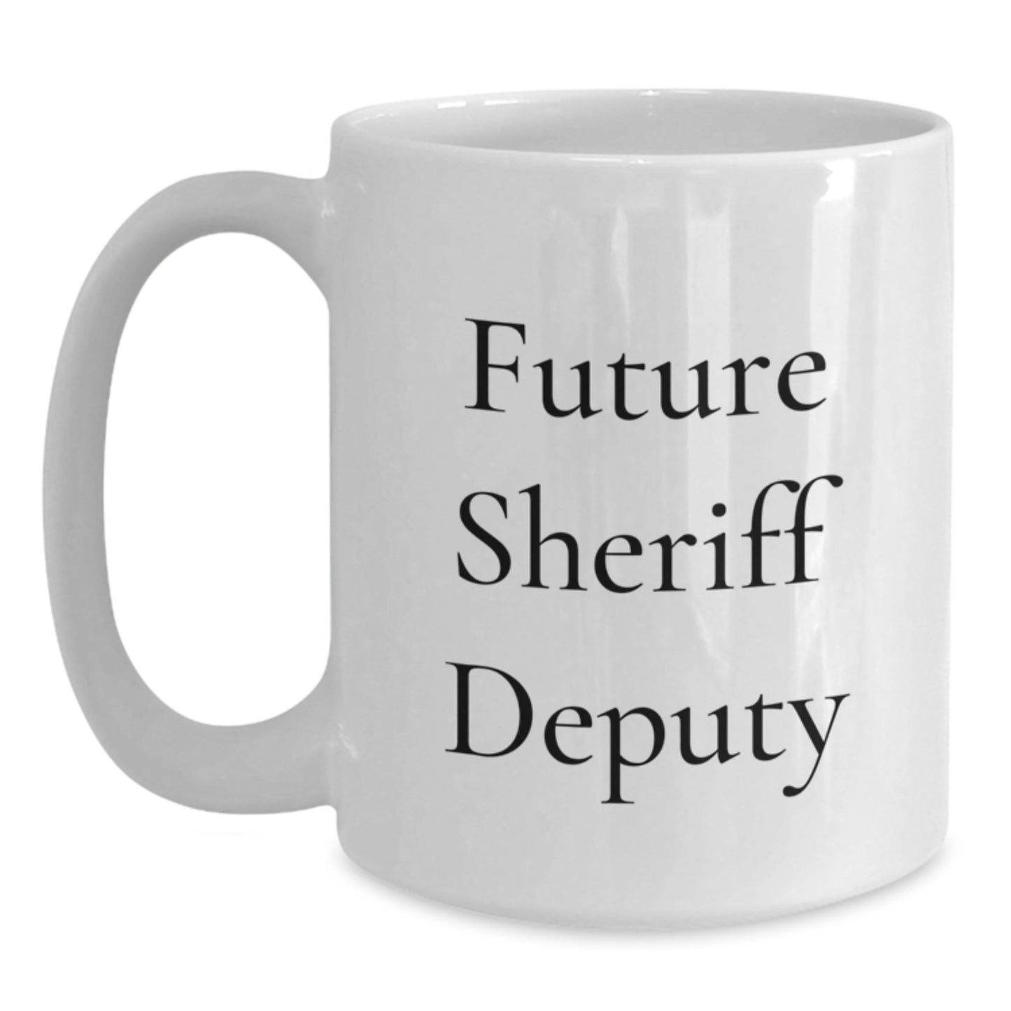 - Start your day as a future Sheriff Deputy with this unique white coffee mug, featuring a quote that will inspire you to strive for excellence. Made from high-quality ceramic, this 11oz or 15oz mug is perfect for hot or cold beverages, and is safe for microwave and dishwasher use.
