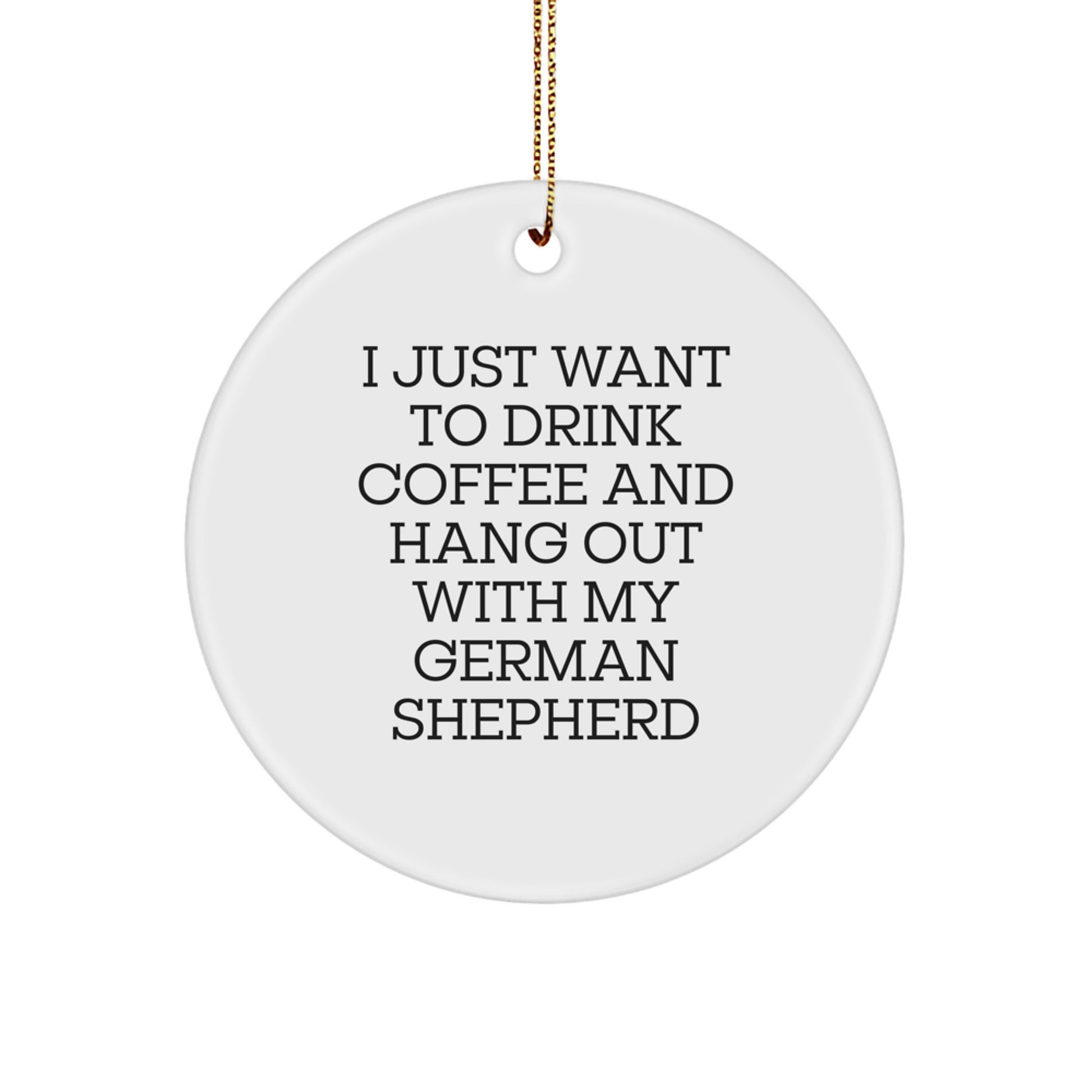Are you a German Shepherd Dog enthusiast or looking for a thoughtful gift for your friend who loves their German Shepherd Dog? This Circle Ornament is the perfect way to show your appreciation and affection for your furry companion. 'I Just Want To Drink Coffee And Hang Out With My German Shepherd' - this quote perfectly captures the bond between humans and German Shepherds.