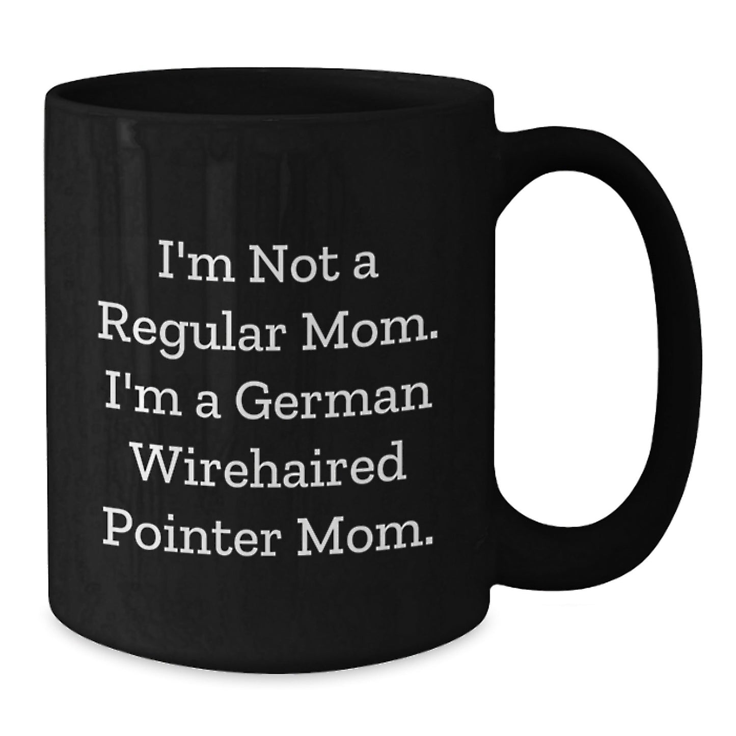 Are you a German Wirehaired Pointer Dog enthusiast? Do you know someone who loves these furry friends? This unique black coffee mug is the ideal gift for any occasion, especially graduation. The quote 'I'm Not A Regular Mom. I'm A German Wirehaired Pointer Mom.' is sure to bring a smile to the face of any German Wirehaired Pointer Dog lover. The mug is available in two sizes, 11oz or 15oz, and is microwave and dishwasher safe. Whether you're a mom, dad, or just a friend, this gift is sure to be appreciated. So why wait? Get your German Wirehaired Pointer Dog Black Coffee Mug today and show your love for these amazing dogs.