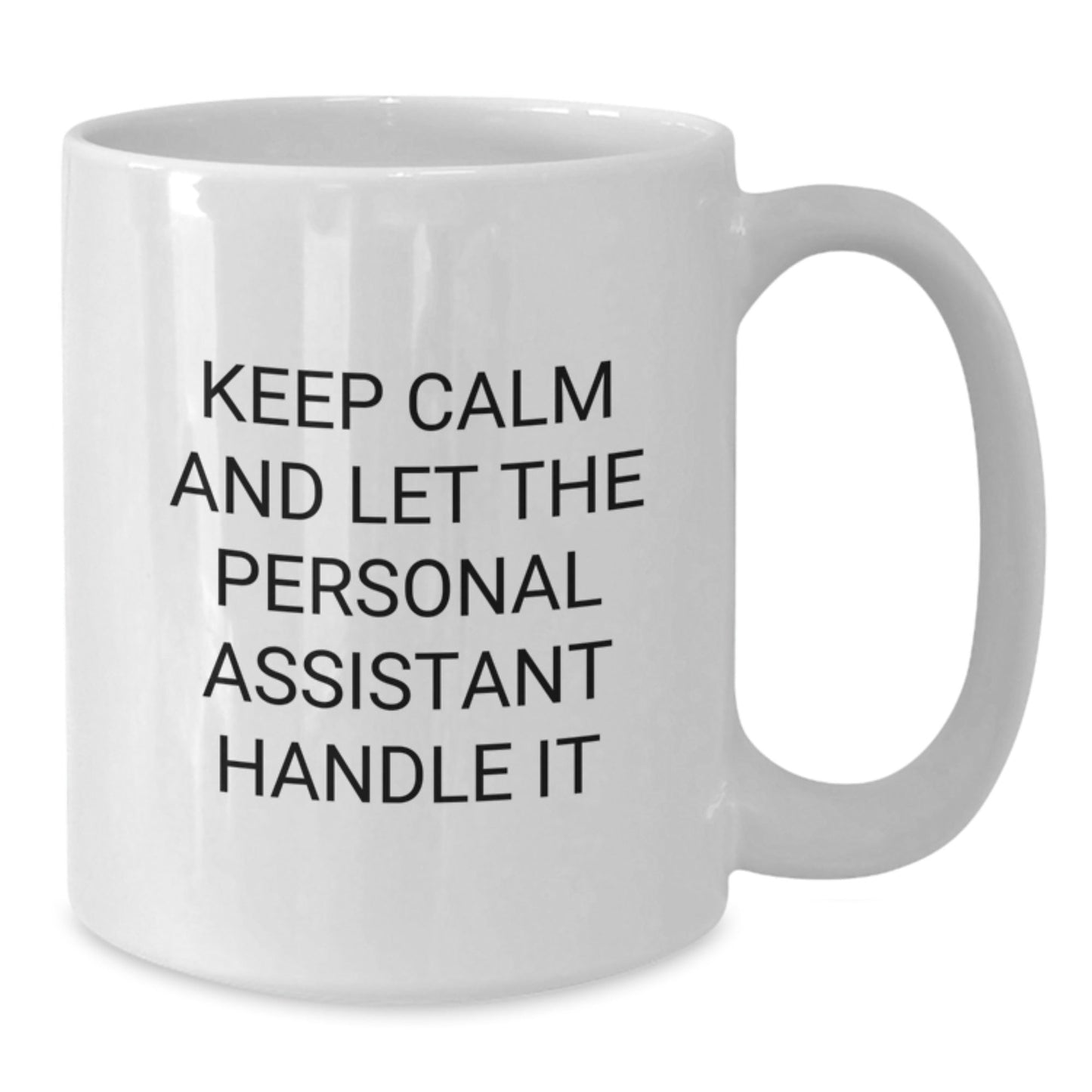 Are you looking for a unique gift for your personal assistant who deserves a little recognition? Look no further! Our funny white coffee mug with the quote 'Keep Calm And Let The Personal Assistant Handle It' is the perfect way to show your appreciation. Made from high-quality ceramic, this mug is microwave and dishwasher safe, making it easy to use and clean. Whether you're a family member, coworker, or friend, this gift is sure to bring a smile to your personal assistant's face. Graduation is a special time, and this mug is a thoughtful way to celebrate their hard work and dedication. So why not get them a gift that they'll truly appreciate? Don't miss out and make their day!