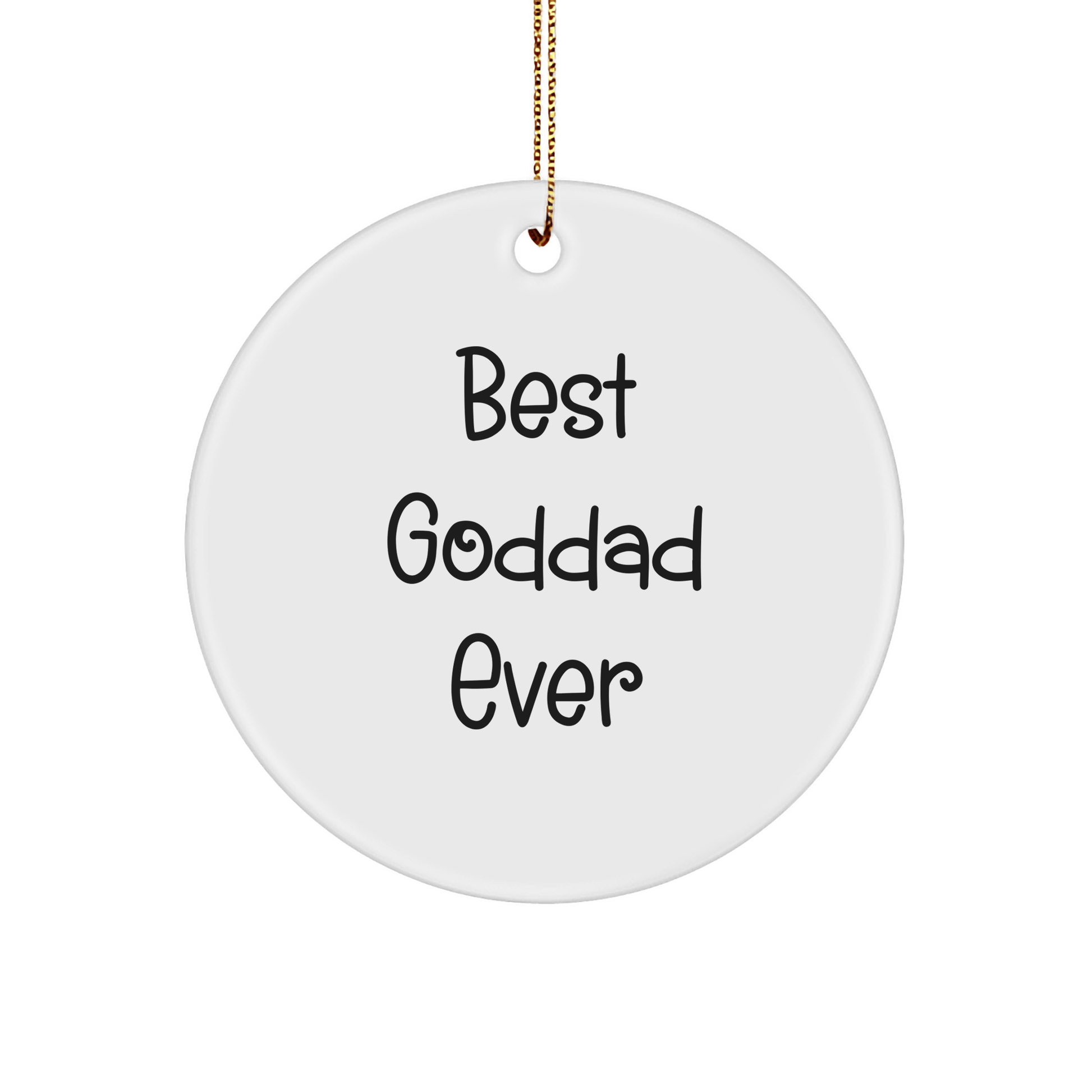 - Experience the best Goddad ever with our vibrant Circle Ornament, perfect for decorating your home during Christmas. Made from sturdy MDF with a high-gloss plastic finish, it features a stunning white color and circle shape, measuring 2.75″ tall, 1/8″ thick, and 0.5 oz. The Sublimation printing process ensures bright, vivid colors from edge-to-edge, making it a standout decoration.