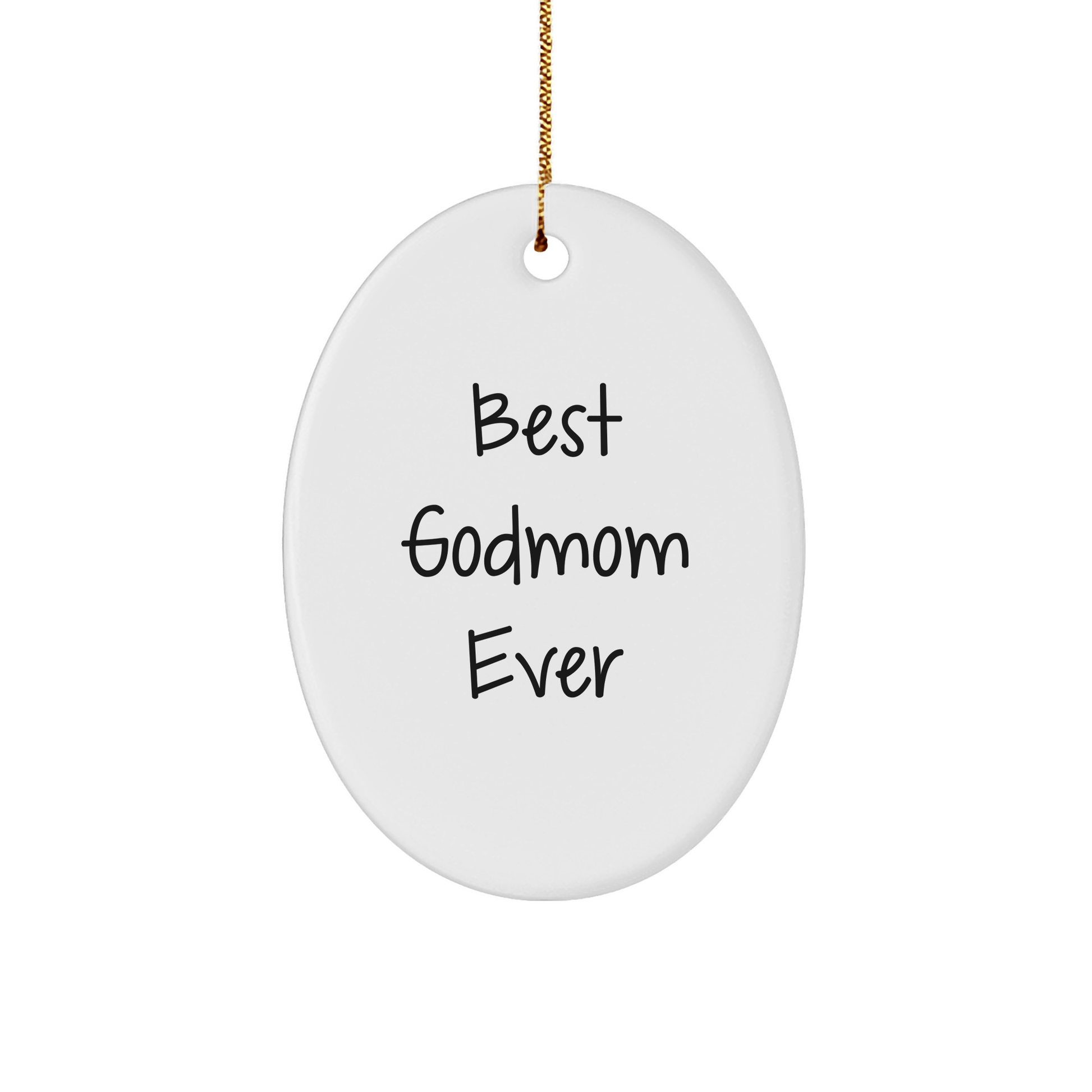 - Make a thoughtful gift for your Godmom with this beautiful 'Best Godmom Ever' Oval Ornament, crafted from sturdy MDF with a high-gloss plastic finish, ensuring a long-lasting design that will be cherished for years to come. Its vibrant printing process guarantees bright, vivid colors that will not fade over time. Perfect for any Godmom who loves to decorate their home for Christmas or any special occasion.