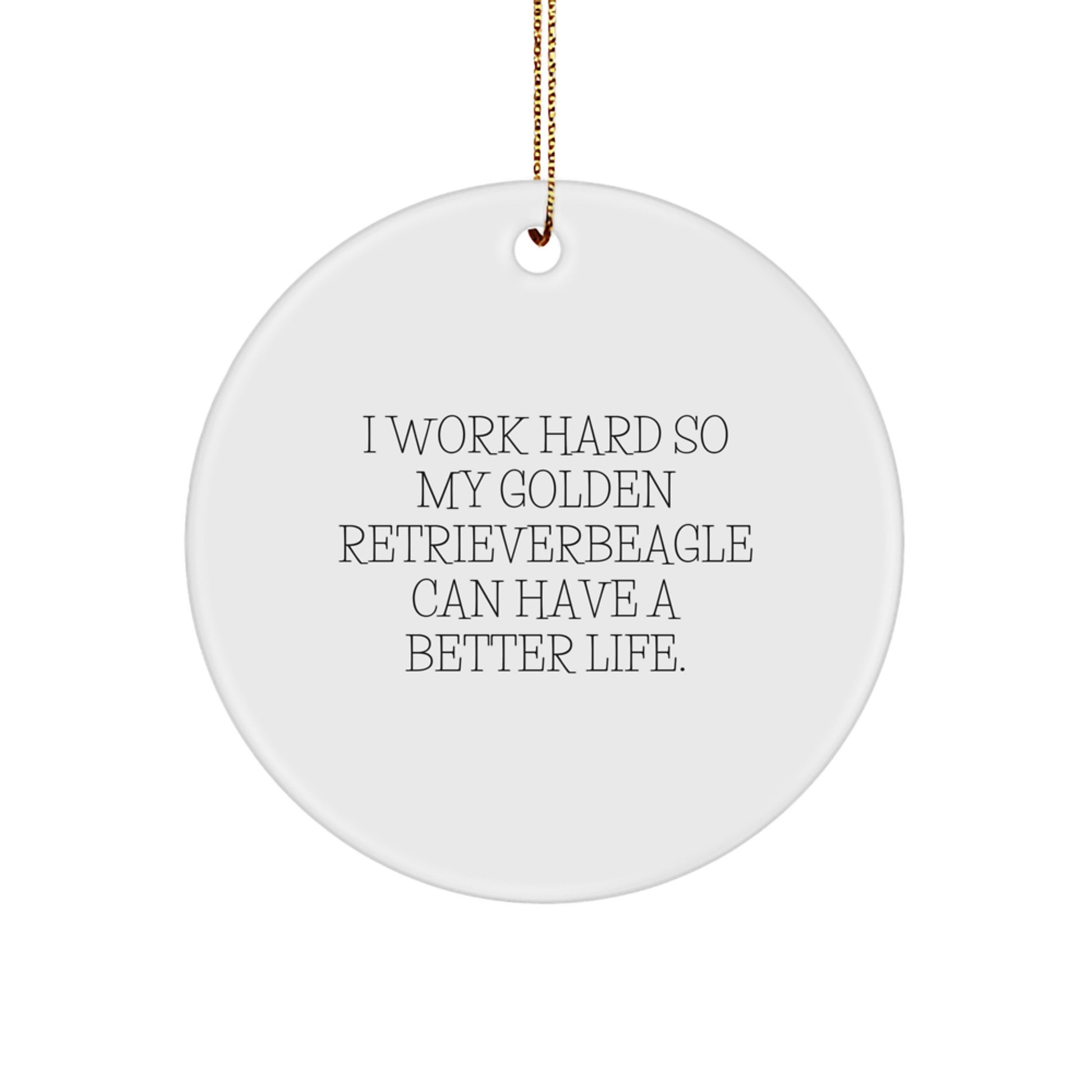 - Beautifully crafted Circle Ornament with a vibrant design and inspirational quote 'I Work Hard So My Golden Retriever Can Have A Better Life.'