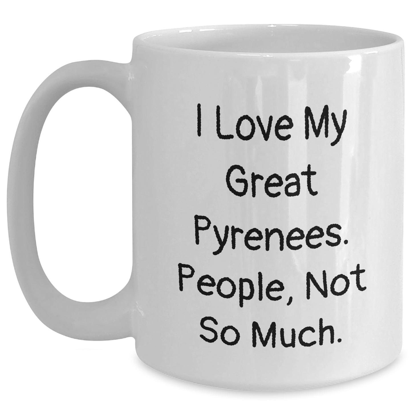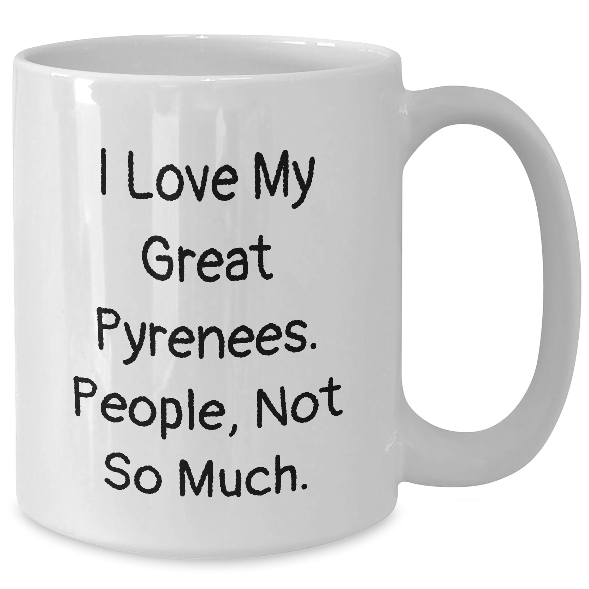 Are you a Great Pyrenees Dog enthusiast or looking for a thoughtful gift for the special person in your life? Look no further! This hilarious white coffee mug is the perfect way to show off your love for these majestic dogs. The quote 'I Love My Great Pyrenees. People, Not So Much.' is sure to bring a smile to anyone's face.