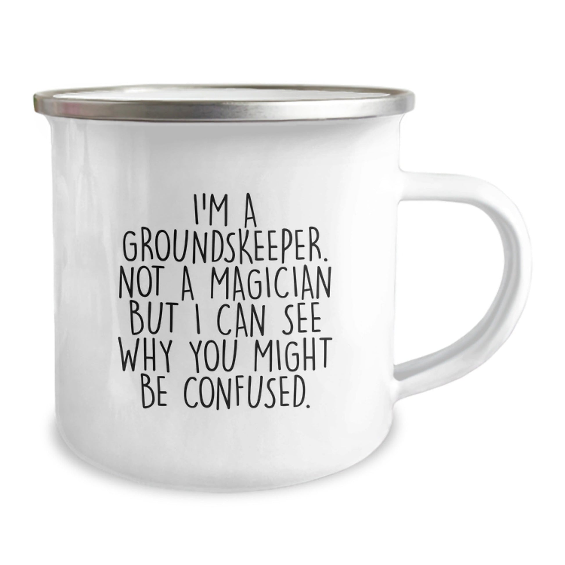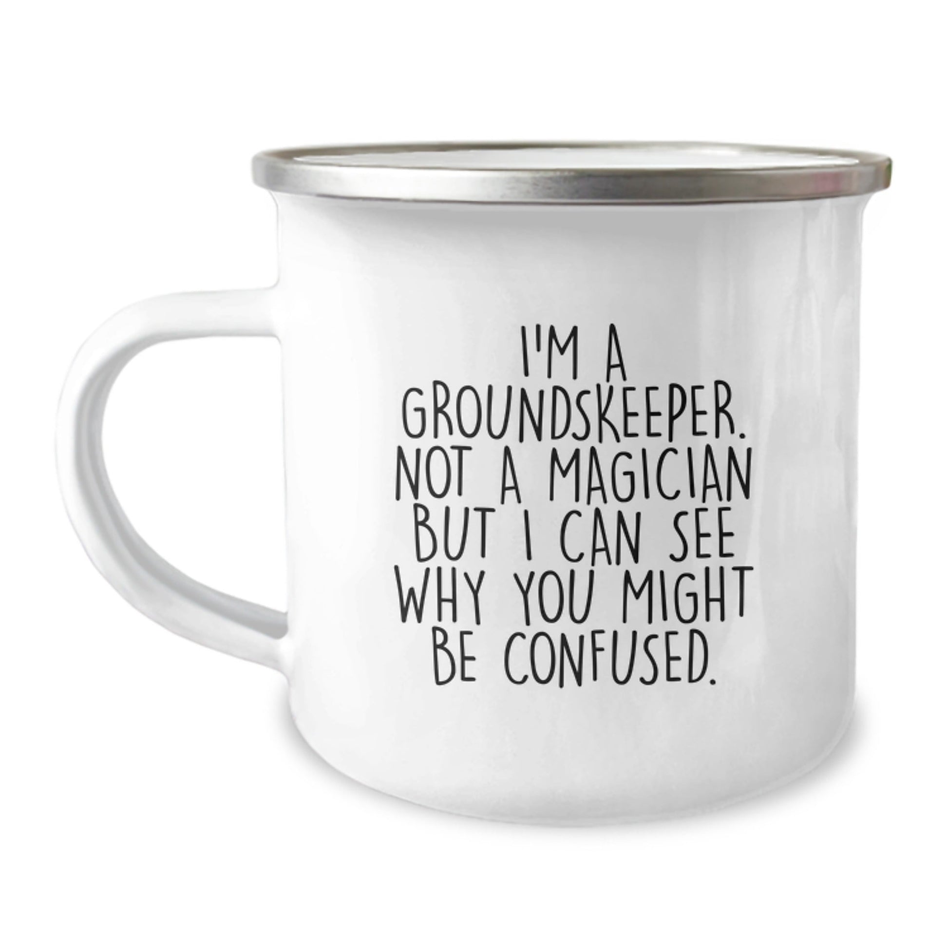 Are you a groundskeeper enthusiast or looking for a unique gift for the special groundskeeper in your life? This Camping Mug is the perfect way to show your appreciation and humor! With its funny quote, 'I'm A groundskeeper. Not A Magician But I Can See Why You Might Be Confused.', this mug is sure to bring a smile to any groundskeeper's face. It's a great way to celebrate their graduation or any occasion.