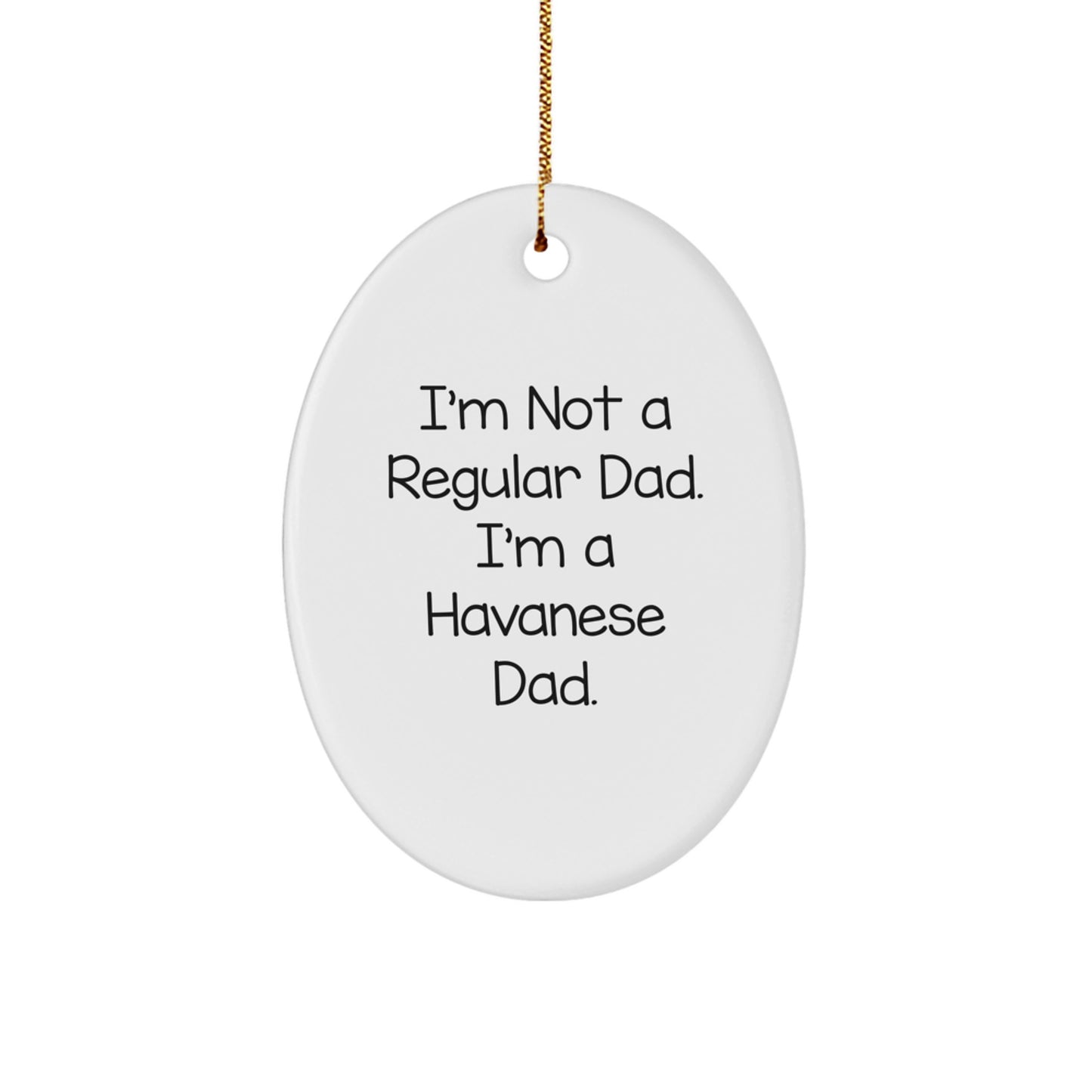 The quote, 'I'm Not A Regular Dad. I'm A Havanese Dad.' is a hilarious way to express your love and dedication to your Havanese dog. And with its oval shape and white color, it's a stylish addition to any room.