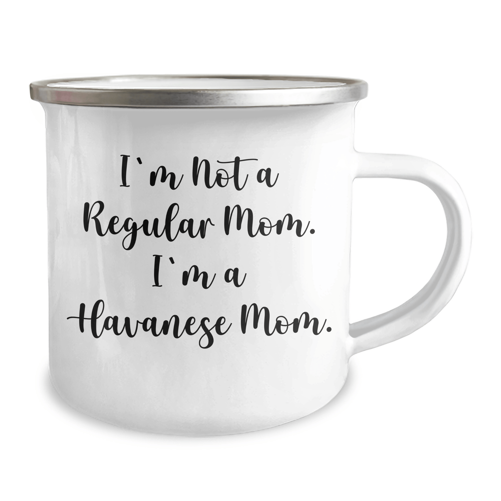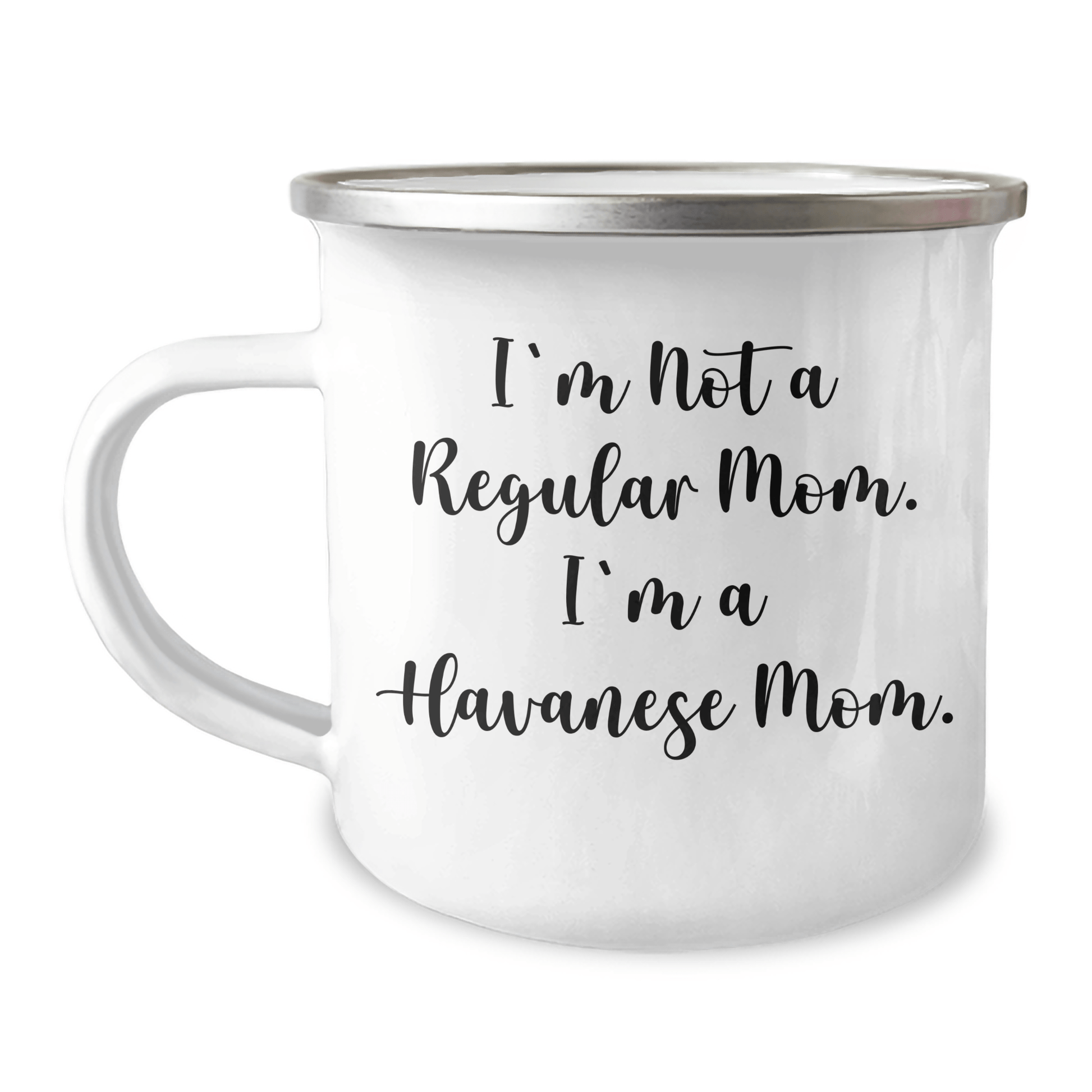 - The 'I'm Not A Regular Mom. I'm A Havanese Mom.' design on our camping mug is a thoughtful gift for any Havanese Dog lover. Show your appreciation for their furry companion with a unique and functional present. Perfect for graduations, birthdays, or any other special occasion.