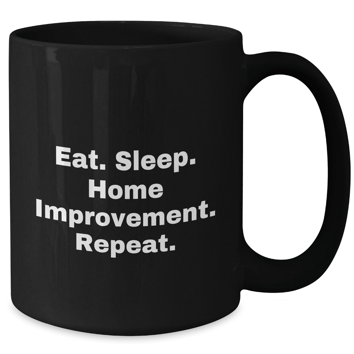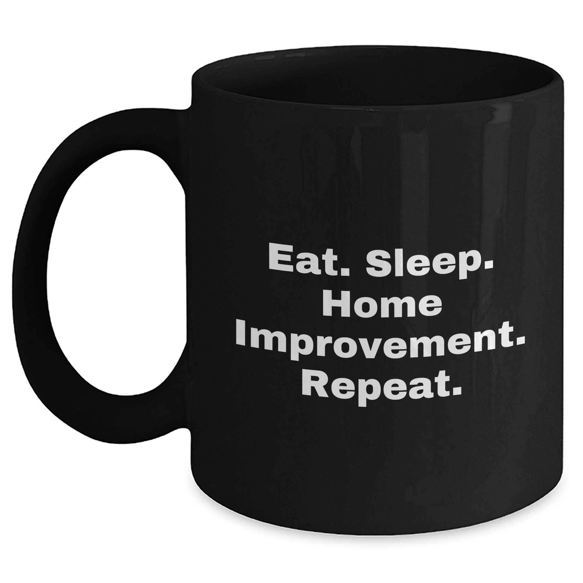 Are you tired of giving the same old boring gifts to the home improvement enthusiast in your life? Look no further! Our unique and funny Eat. Sleep. Home Improvement. Repeat. black coffee mug is the ideal gift for Dad, a friend, or coworker who loves to work on their home sweet home. Made of high-quality ceramic, this 11oz or 15oz mug is microwave and dishwasher safe, making it a practical and thoughtful gift.