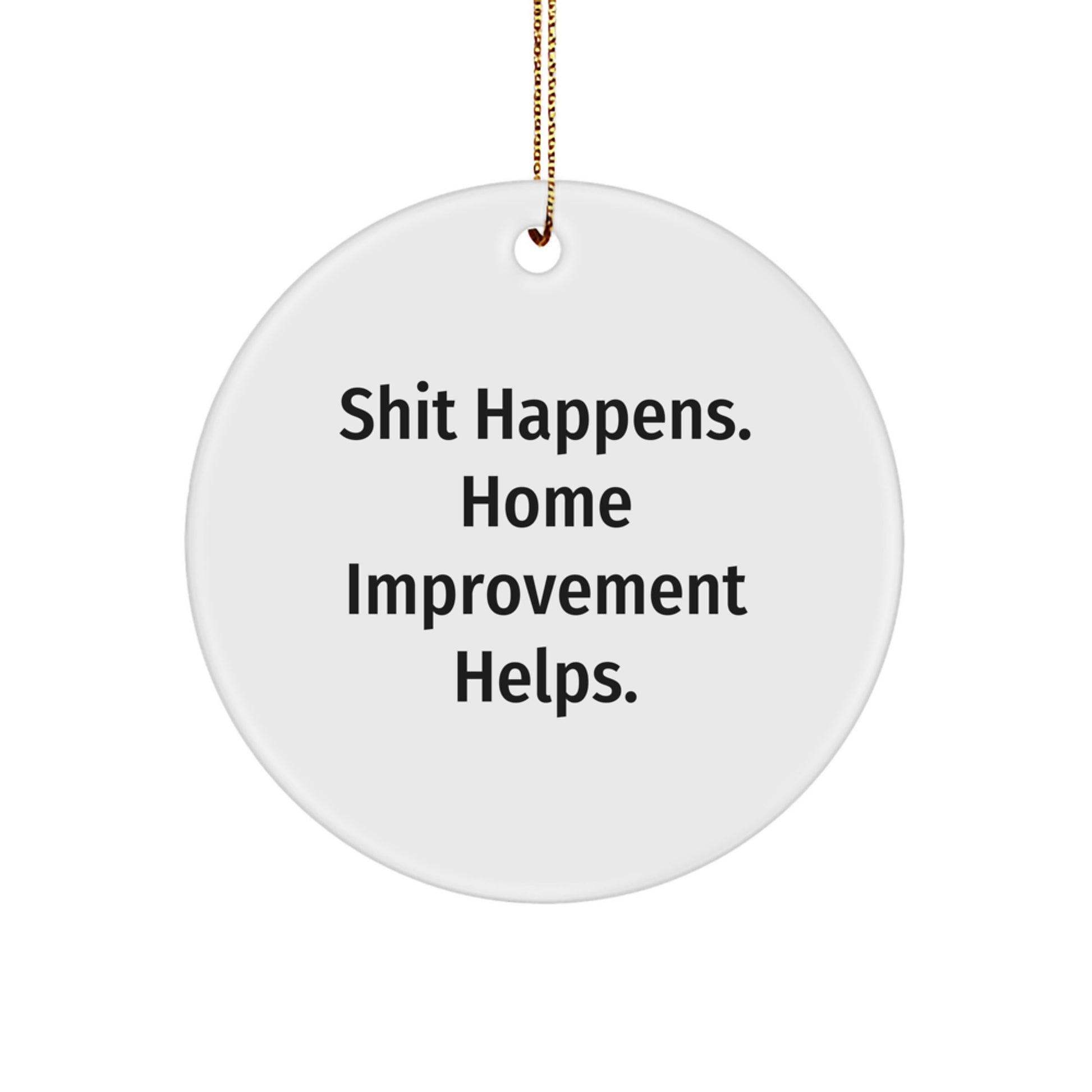 Whether you're looking for a gift for a friend, family member, or coworker, this circle ornament is sure to bring a smile to their face. So why wait? Get your 'Shit Happens. Home Improvement Helps.' circle ornament today and show your love for home improvement in a fun and unique way.