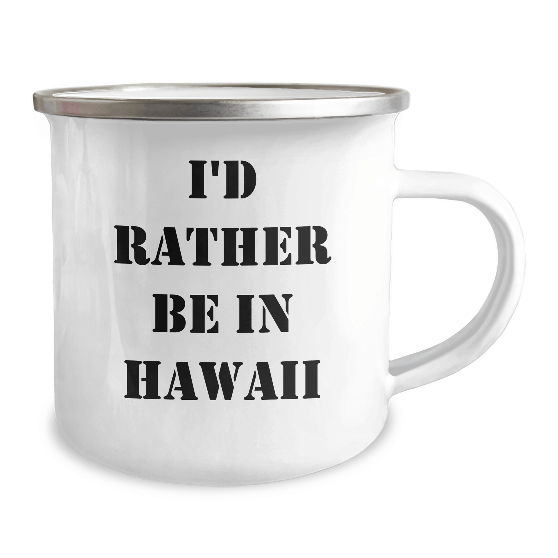 Are you a beach lover or just a fan of the Aloha State? Give the gift of a memorable experience with this 'I'd Rather Be In Hawaii' camping mug! Perfect for a graduation gift, this unique mug is designed for the adventurous type who loves the great outdoors.