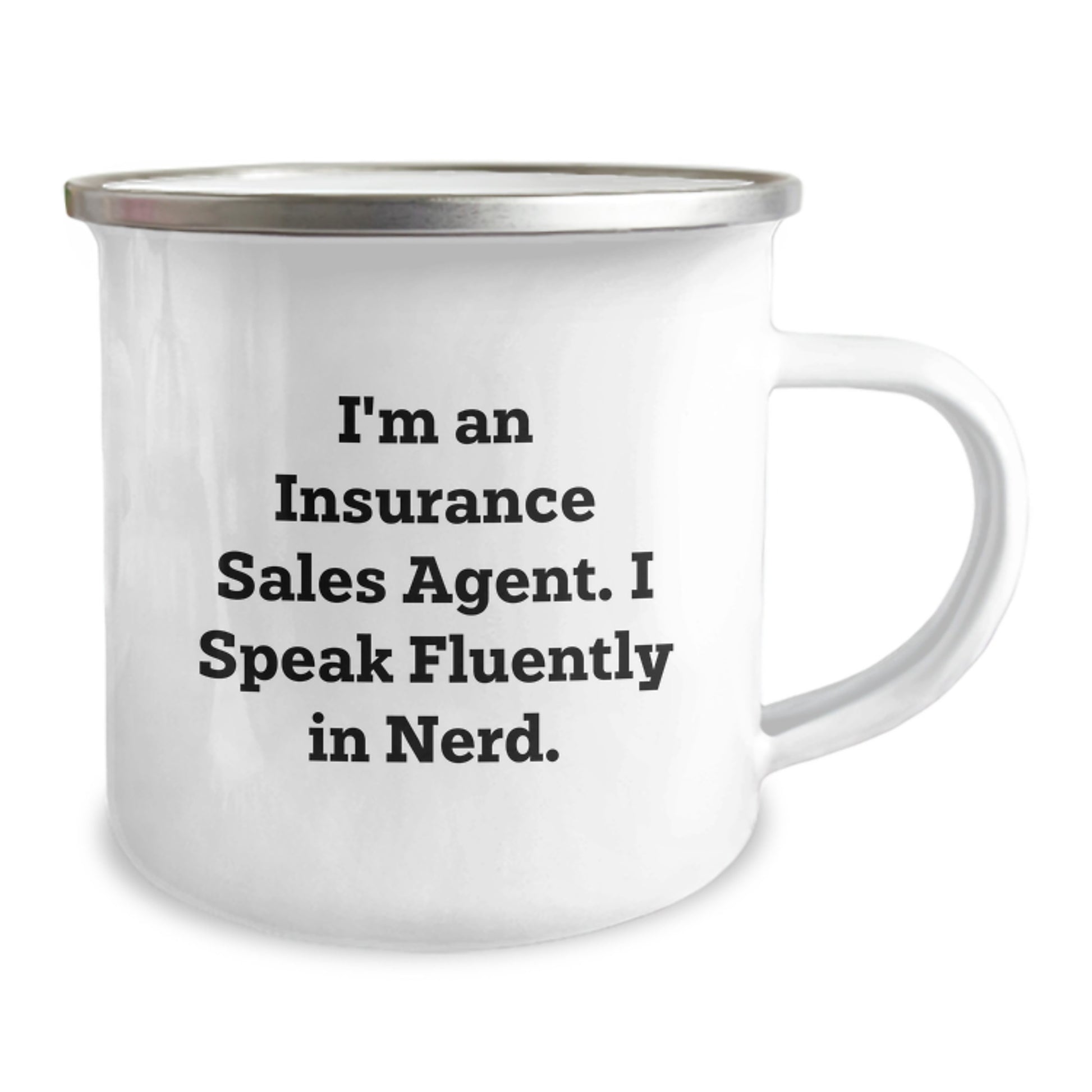 Are you a fan of insurance sales agents who speak fluently in nerd? If so, this funny camping mug is the ideal gift for your favorite insurance sales agent! With its permanent printing and enamel finish, this 12 oz stainless steel mug is both sturdy and stylish. Make it a birthday gift to remember for the insurance sales agent in your life.