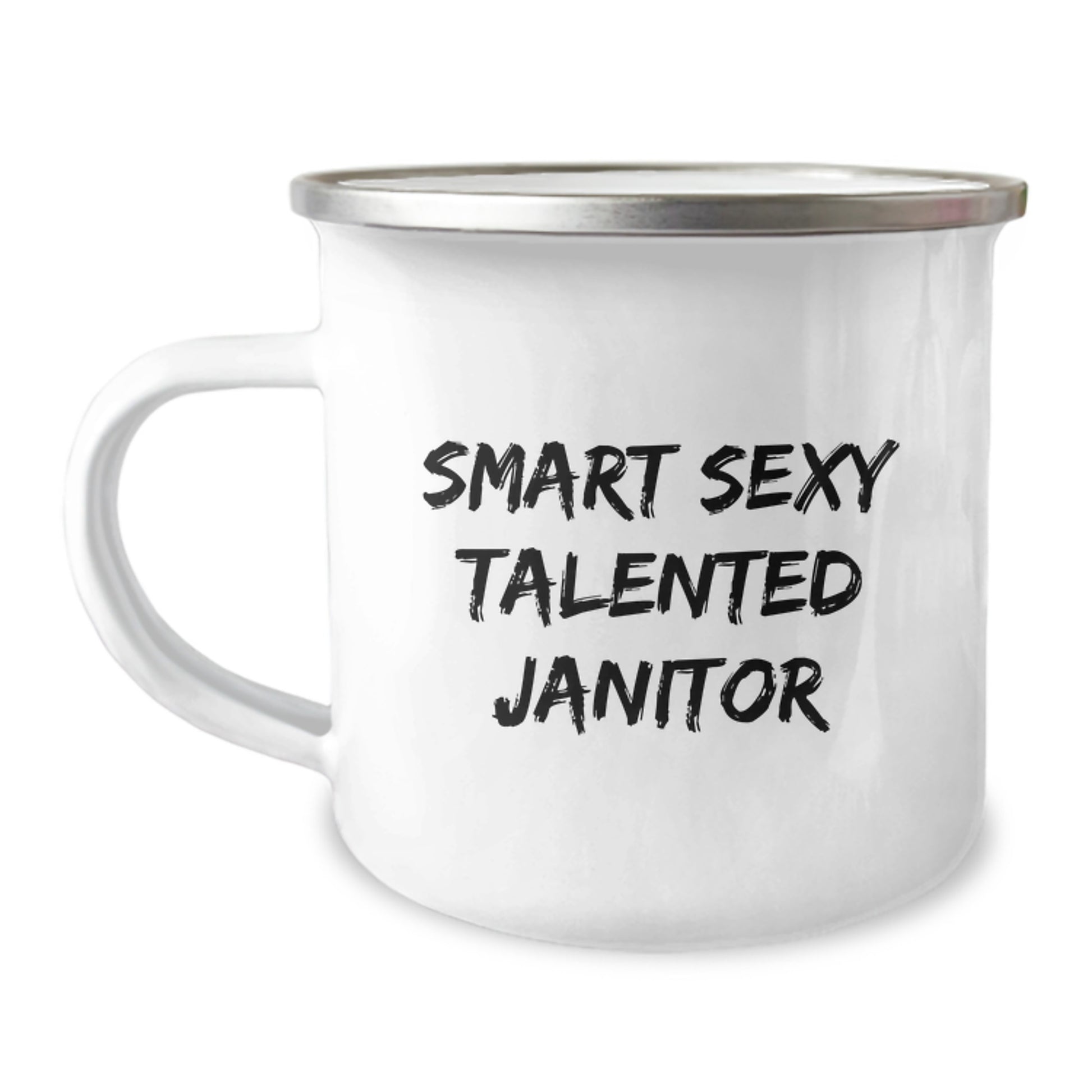 Are you looking for a unique gift for your favorite janitor or someone who loves their job? Look no further! This 'Smart Sexy Talented Janitor' quote on a 12 oz stainless steel camping mug is the perfect way to show your appreciation for their hard work. The quote is funny and inspiring, making it a great addition to any janitor's morning routine. Whether you're a friend, coworker, or family member, this gift is sure to bring a smile to their face. And with its sturdy stainless steel construction and enamel finish, this mug is built to last. So why settle for a boring gift when you can give something that shows you care?