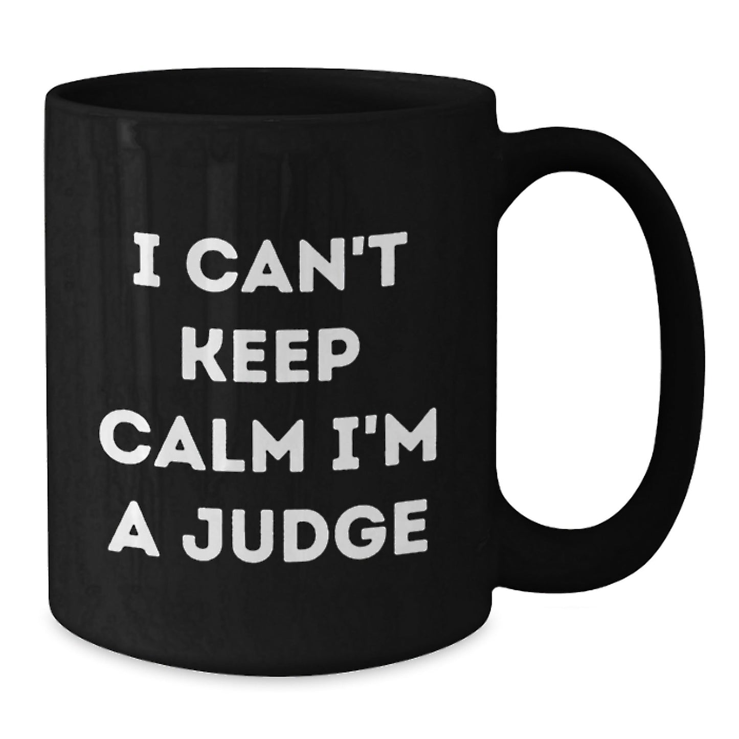 - Enjoy your favorite hot or cold beverages in style with this funny Judge coffee mug, featuring the hilarious quote 'I Can't Keep Calm I'm A Judge'; Perfect gift for Judge enthusiasts and coffee lovers alike; Available in black with a capacity of 11oz or 15oz; Microwave and dishwasher safe for easy cleaning and care; Make a statement with this unique and humorous gift, perfect for graduation or any occasion