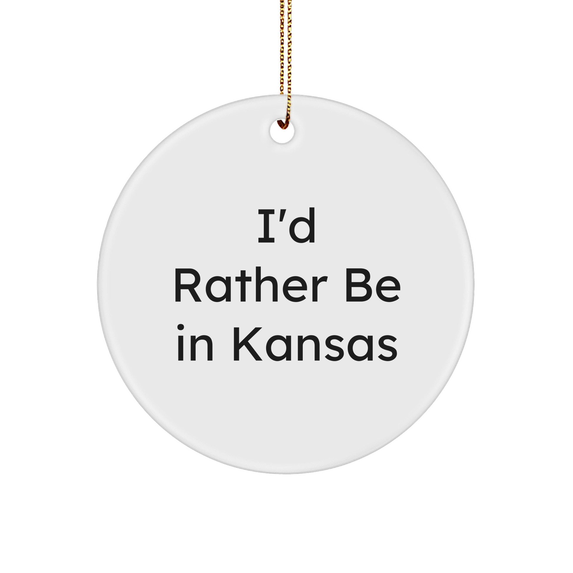 - Experience the beauty of Kansas with this vibrant 'I'd Rather Be In Kansas' Circle Ornament, perfect for decorating your home or giving as a thoughtful gift to friends and family. Its durable MDF construction and high-gloss finish ensure long-lasting designs, while the Sublimation printing process creates bright, vivid colors that will delight anyone.