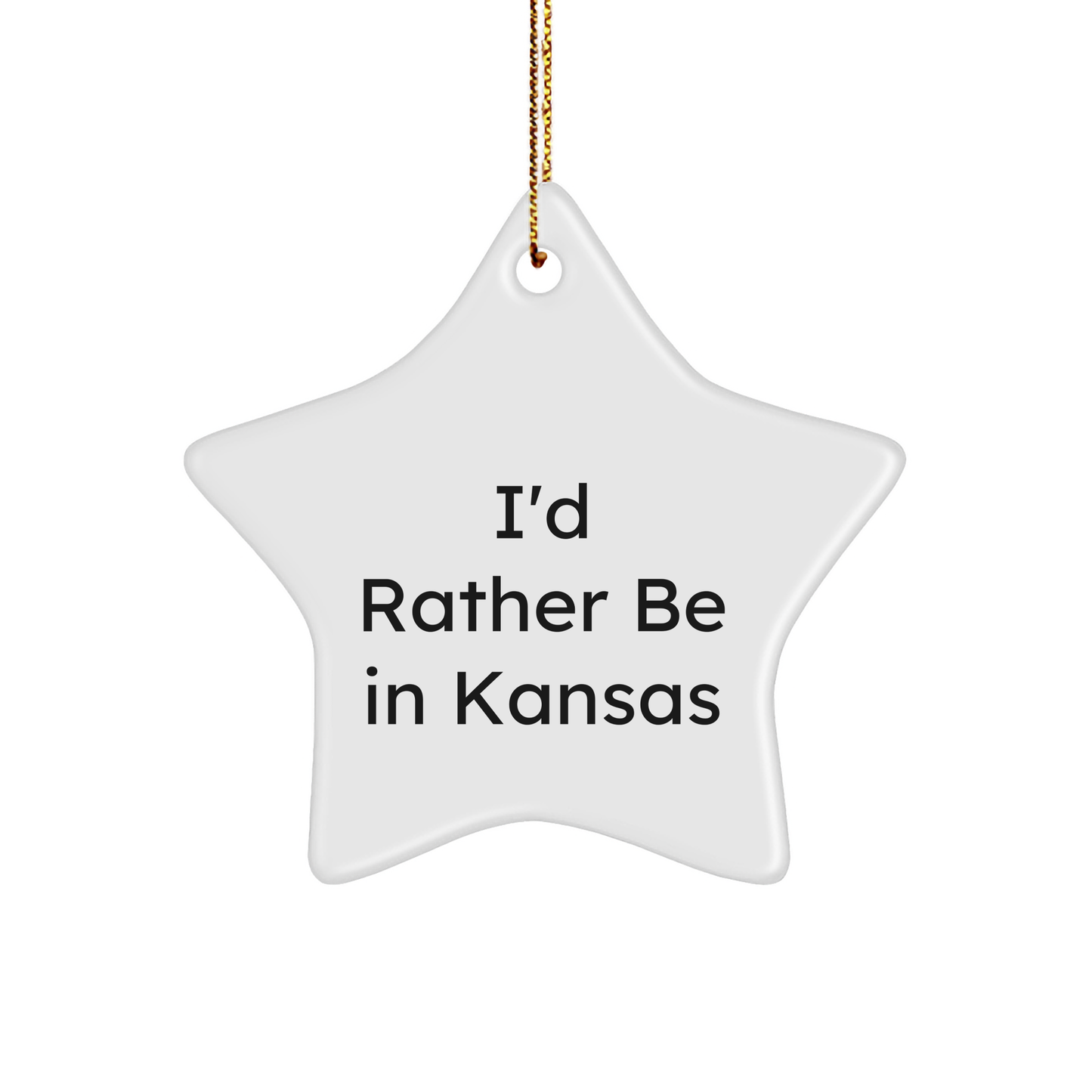 - Brighten up your holiday season with this 'I'd Rather Be In Kansas' Star Ornament, featuring a vibrant and colorful design that's sure to become a treasured keepsake. Perfect for decorating your Christmas tree, giving as a gift, or adding a touch of Kansas charm to your home decor.
