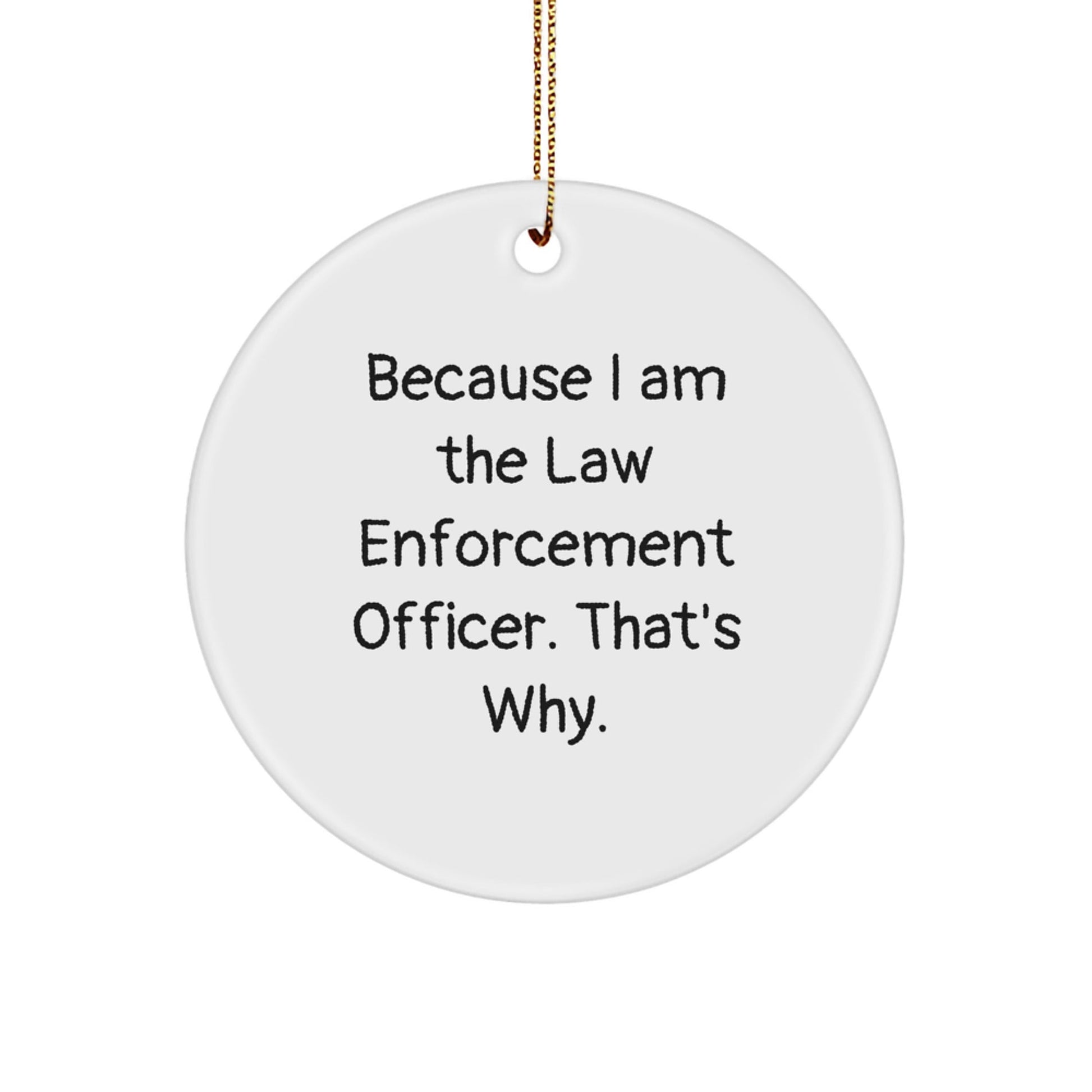 - Make a statement in your home or office with this unique 'Because I Am The Law Enforcement Officer. That's Why.' Circle Ornament, designed specifically for Law Enforcement Officers like you, with a vibrant white color and a circle shape that adds a touch of elegance to any setting.