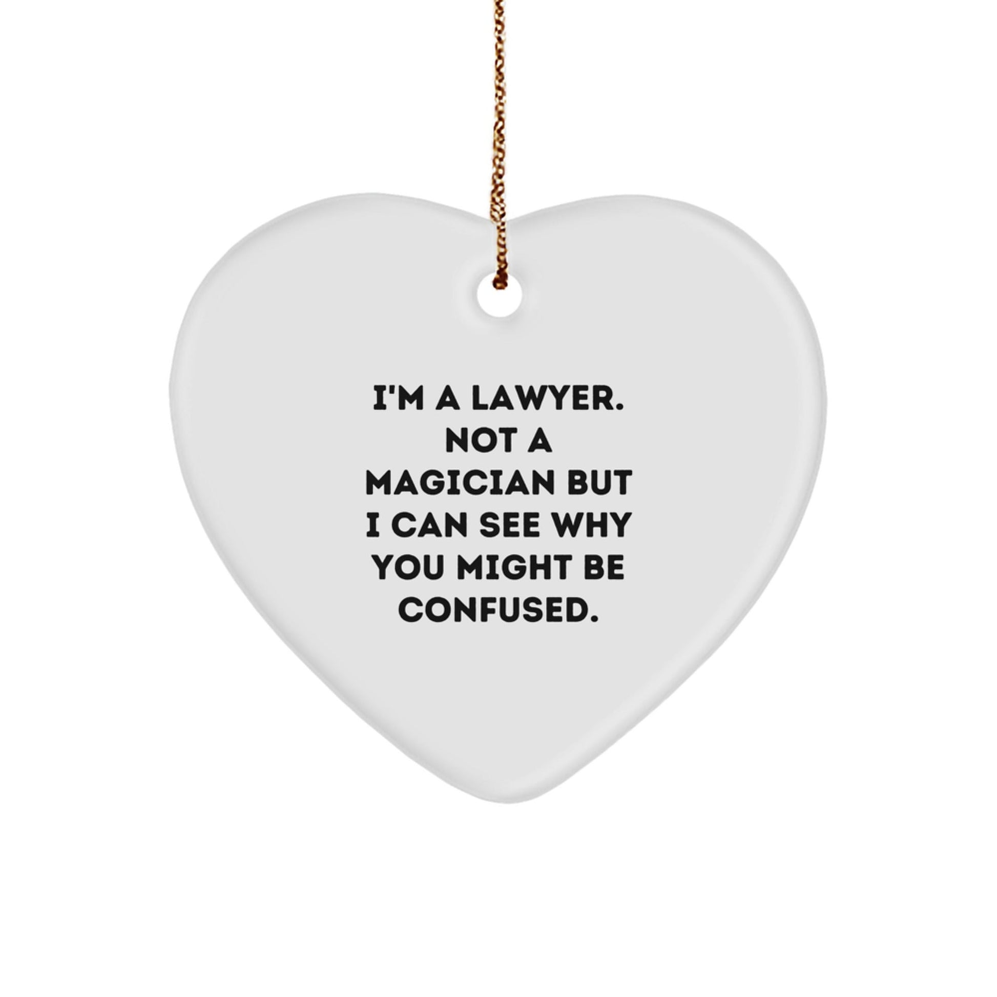 Whether you're a lawyer yourself or just want to show your appreciation for a lawyer's hard work, this heart-shaped ornament is the ideal gift for the holiday season. So why wait? Get your 'I'm A Lawyer. Not A Magician But I Can See Why You Might Be Confused.' heart-shaped ornament today and make a memorable impression!